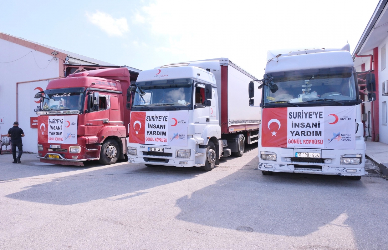 Adana Büyükşehir Belediyesi ve Türk Kızılay’ı arasında imzalanan protokol kapsamında; hijyen malzemesi yüklü üç tır, Suriye’ye ulaştırılmak üzere yola çıkarıldı. Türk Kızılay Adana Bölge Afet Yönetimi Müdürlüğü bahçesinden yola çıkarılan konvoyu; Adana Büyükşehir Belediye Başkanı Zeydan Karalar, Türk Kızılayı Genel Sekreteri Ramazan Saygılı, her iki kurumun bürokrat ve çalışanları uğurladı.