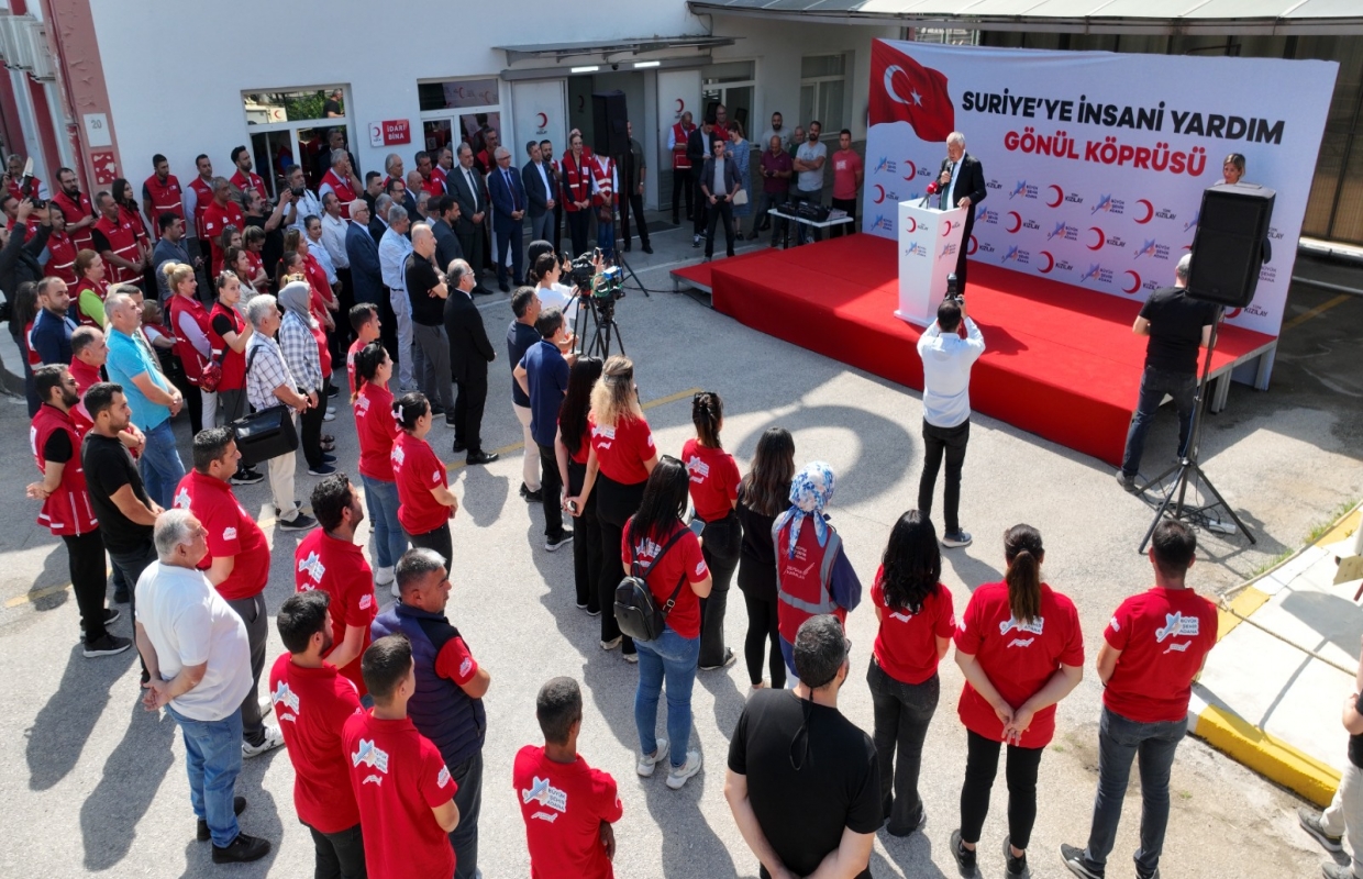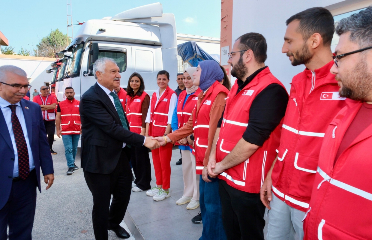 dileğiyle bugün insanı yardım tırlarımızı yola çıkarıyoruz.”