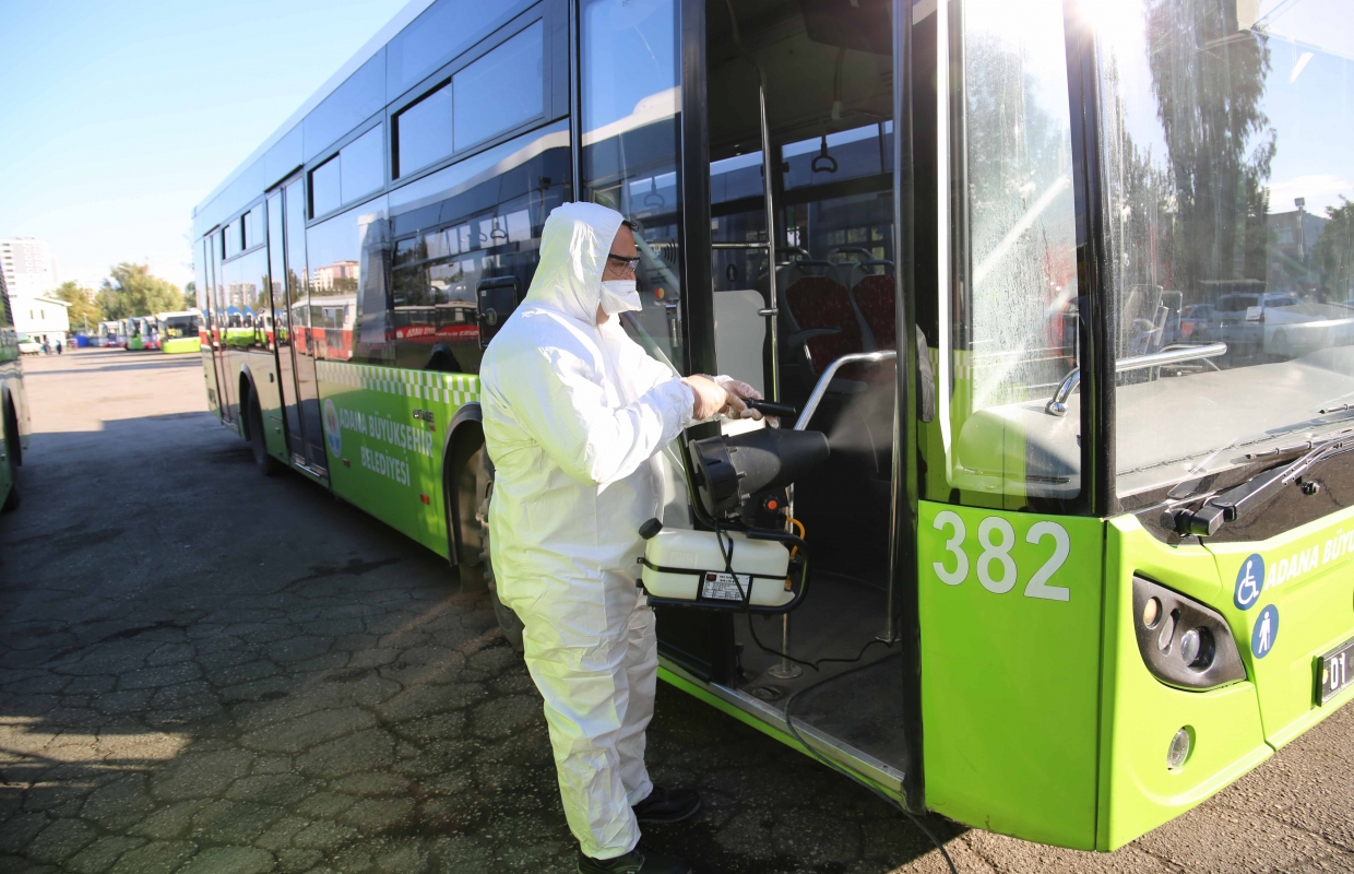 Adana Büyükşehir Belediyesi, koronavirüs salgınının yayılma hızını azaltmak için aldığı önlemler kapsamında çalışmalarına devam ediyor. Adana Büyükşehir Belediyesi Çevre Koruma ve Kontrol Daire Başkanlığı’na bağlı ekipler yurttaşların yoğun olarak kullandığı toplu taşıma araç ve duraklarında dezenfekte çalışmasını yoğunlaştırdı.