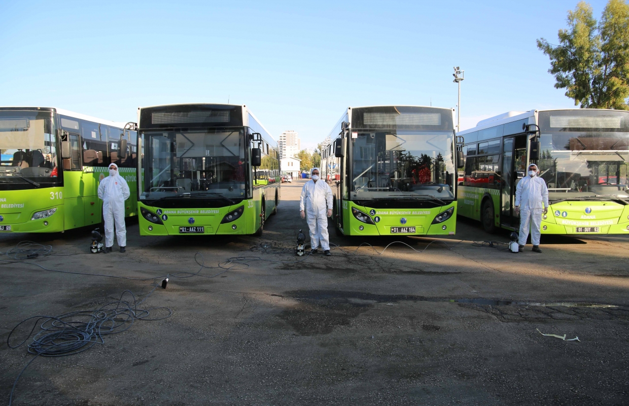 Büyükşehir, Adana’da faaliyet gösteren toplu taşıma araçlarını dezenfekte etti