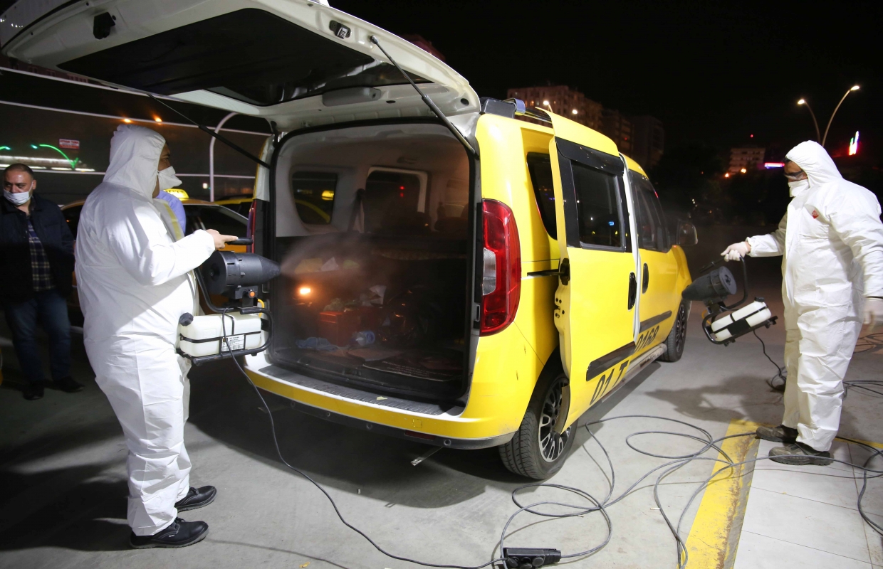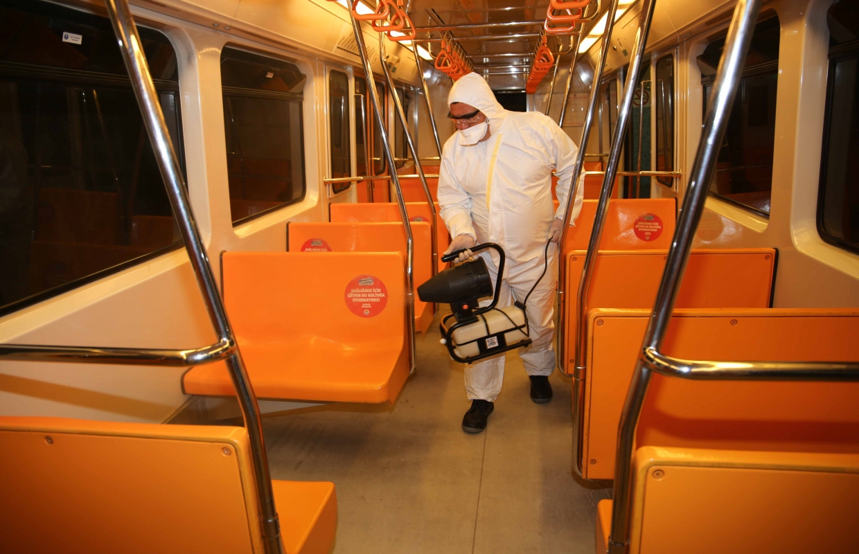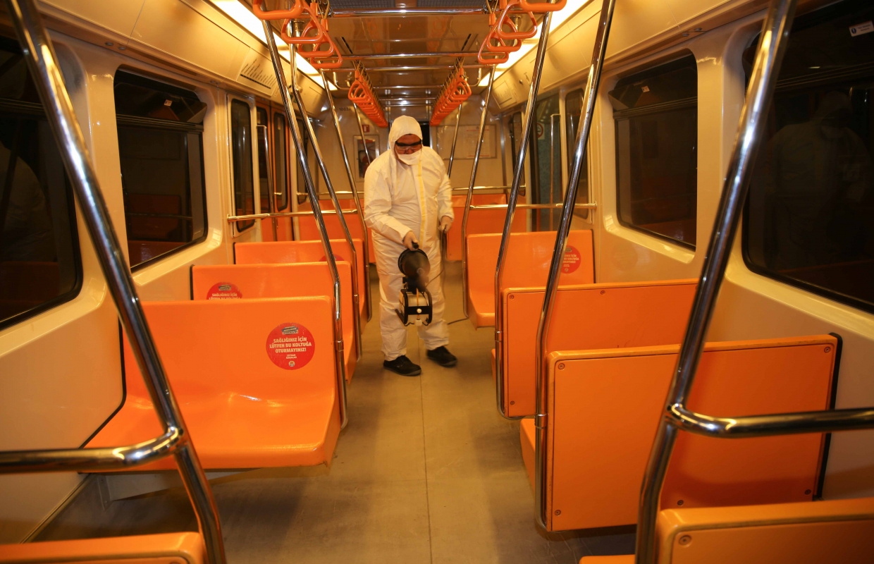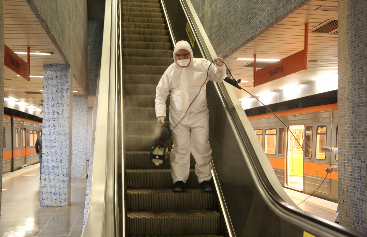 Yurttaşların yoğun olarak kullandığı alanları titizlikle dezenfekte eden ekipler, öncelikle metro, belediye otobüsleri, özel halk otobüsleri, dolmuşlar ve taksiler ile durakları salgına karşı 7/24 dezenfekte ediyor.