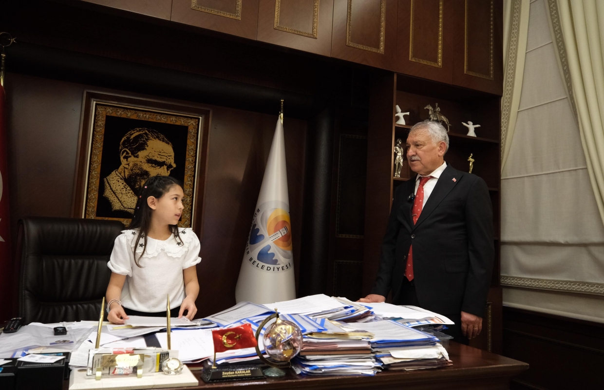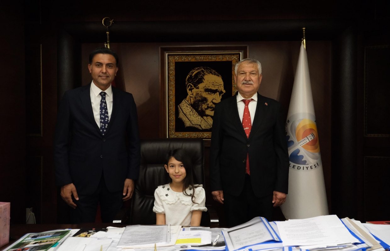 Başkan Zeydan Karalar’ın makamına oturan Ezgi Neva Salçuk’a;
