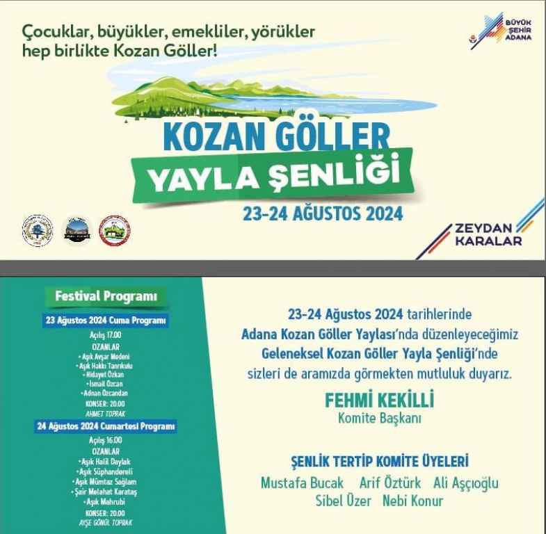 Kozan Göller Yayla Şenliği, basın mensupları için araç 24 Ağustos Cumartesi günü saat 14:00 Adana Büyükşehir Belediyesi önünden kalkacaktır..