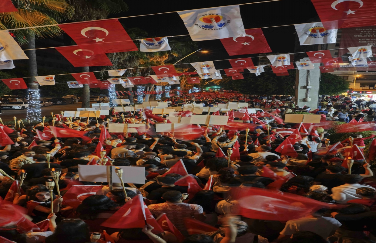 Kutlamalarında on binlerce Adanalı, Adana Büyükşehir Belediyesi önünde toplandı