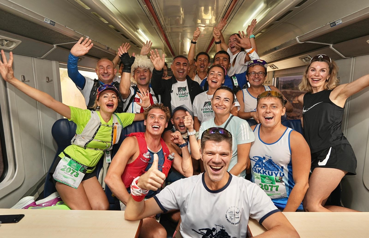 erken saatlerde sporcularla birlikte yarışın başlangıç noktasına trenle giden