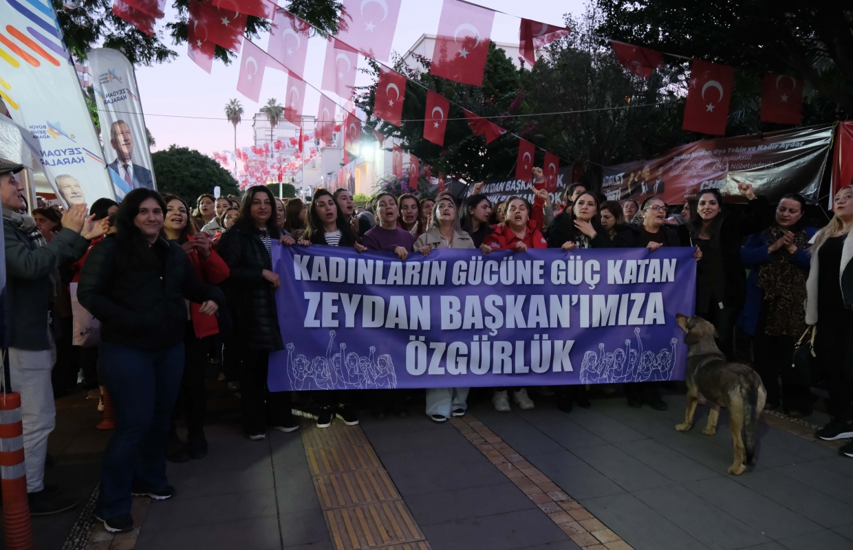 “Kadınların Gücüne Güç Katan Zeydan Başkanımıza Özgürlük” pankartı