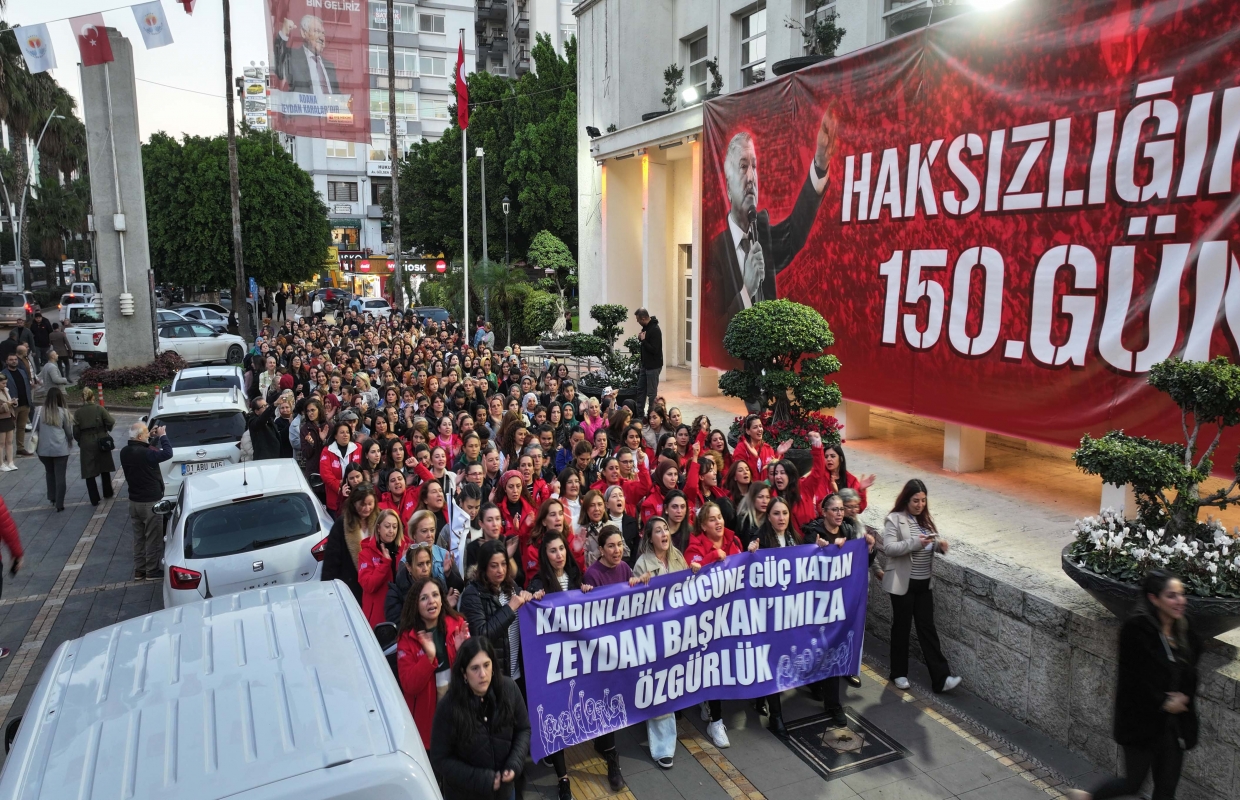 “Kadınların Gücüne Güç Katan Zeydan Başkanımıza Özgürlük” yazılı pankart taşıyan binlerce kadın çalışan, sloganlar ve alkışlarla özgürlük talebinde bulundu.