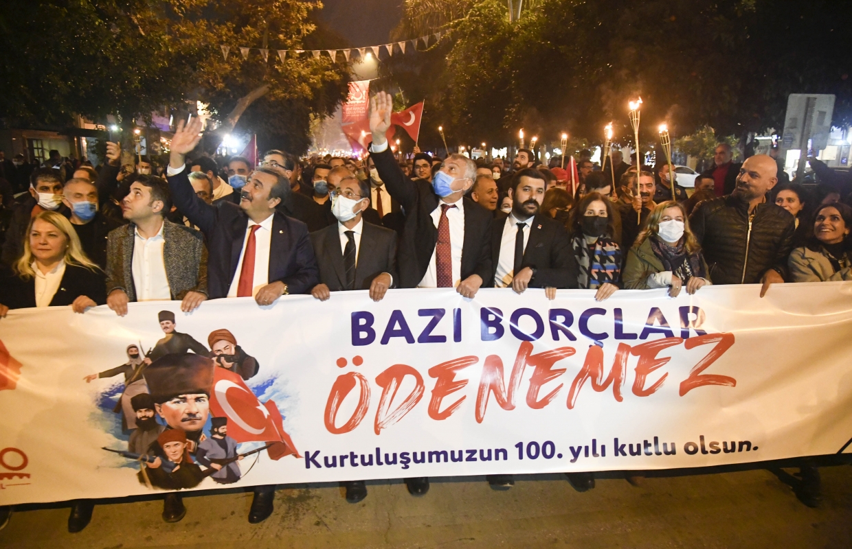 Uğur Mumcu Meydanı’na kadar meşaleli yürüyüş yapıldı. “Bazı borçlar ödenemez”
