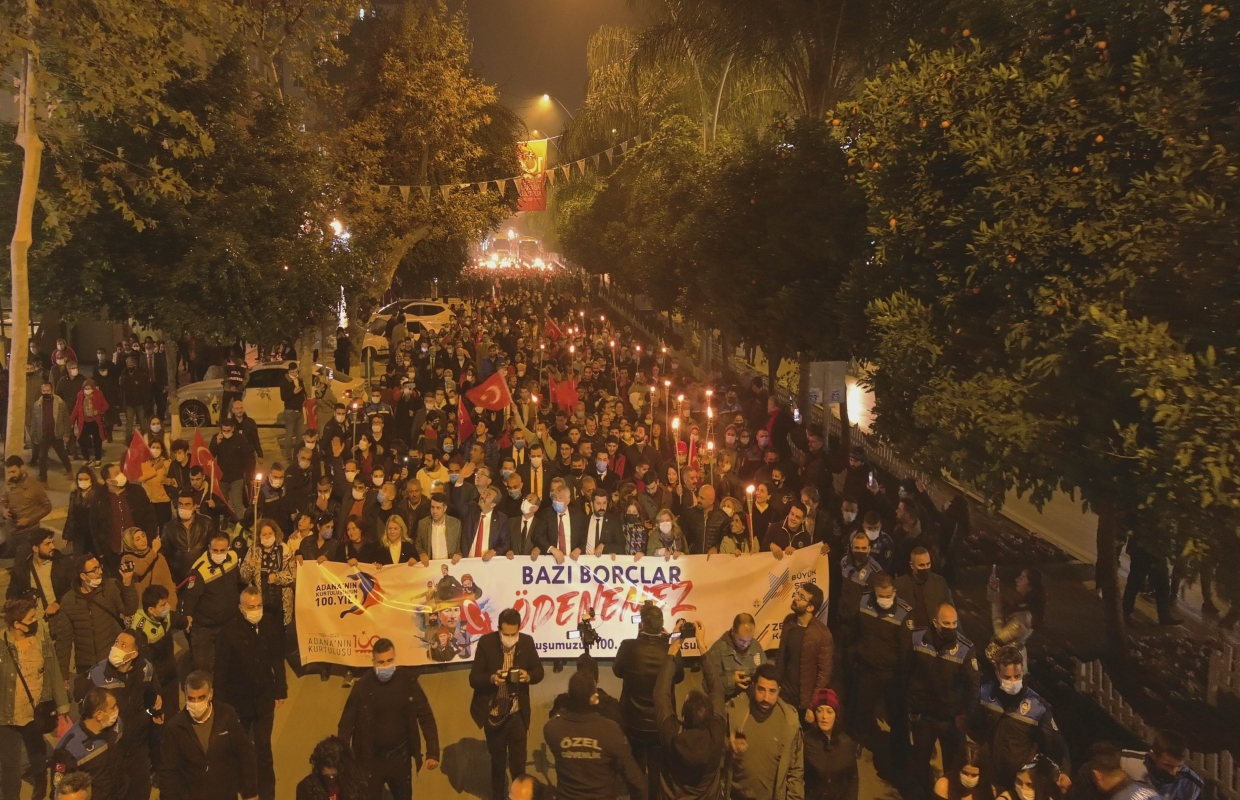 Meşaleli yürüyüşün ardından Uğur Mumcu Meydanı’nda Gazapizm konserinde de halka hitap eden Başkan Zeydan Karalar, 100 yıl önce Ulusal Kurtuluş Mücadelesi’nde halkın tek vücut olarak vatanı düşman işgalinden kurtardığını belirtti. Başkan Zeydan Karalar, “Günümüzde de Adana mertliktir, kardeşliktir. Ayırmayız birbirimizi , paylaşırız her şeyimizi” diye konuştu.