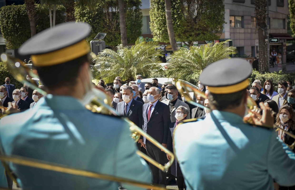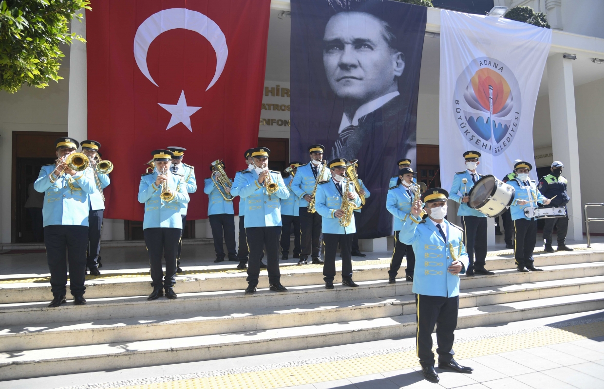 İstiklal Marşı’nın kabulünün 100. Yılı nedeniyle, Adana Büyükşehir Belediye Başkanı Zeydan Karalar ve Büyükşehir bürokratları belediye binası önünde İstiklal Marşı okudu.