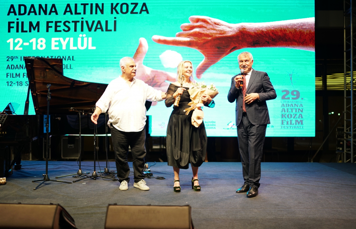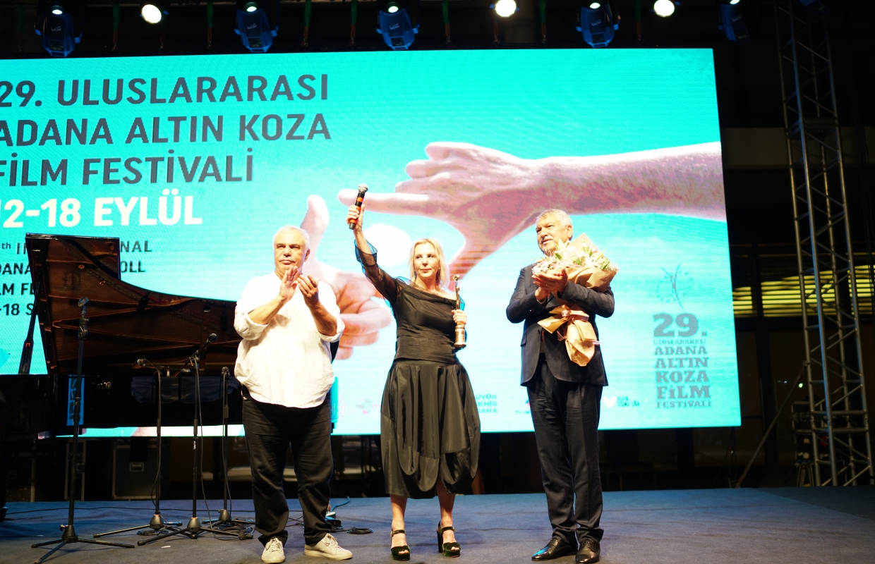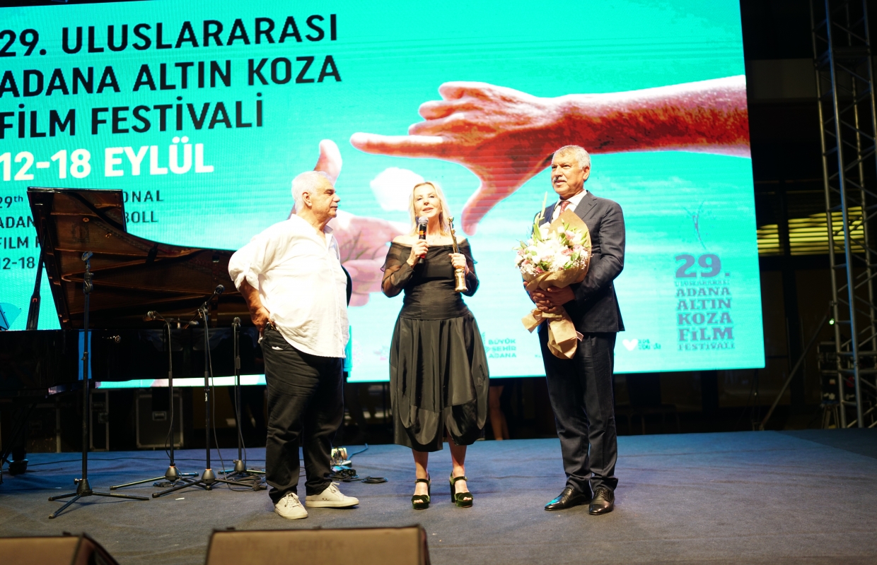 Türk Sineması’nın usta ismi Hale Soygazi’ye ödülünü, Adana Büyükşehir Belediye Başkanı Zeydan Karalar ve Halil Ergün takdim etti. Hale Soygazi ‘’Bu gemiyi buraya getiren emekçilere şükran borçluyuz. Söylenecek o kadar çok şey var ki. Bu ödülü demokrasiye, özgürlüğe, eşitliğe, adalete adıyorum’’ dedi.