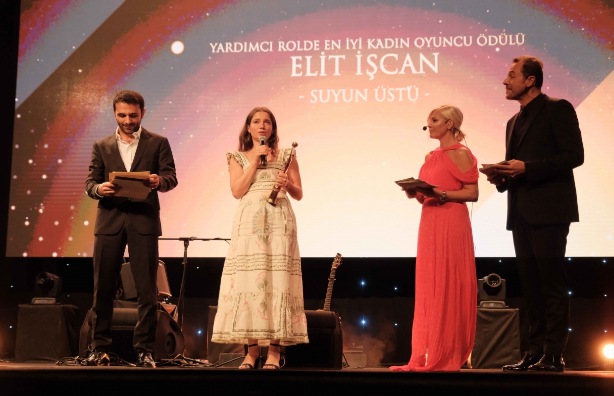 ödülünü jüri üyesi oyuncu Bennu Yıldırımlar’ın elinden aldı.