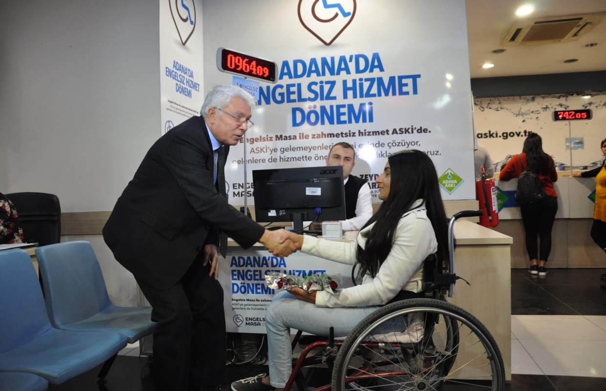 3 Aralık Dünya Engelliler Günü’nde, engelli aboneye çiçek veren ASKİ bürokratları, Adana Büyükşehir Belediye Başkanı Zeydan Karalar’ın talimatları doğrultusunda, verilen hizmetlerde engelli vatandaşların işini kolaylaştırmaya devam edeceklerini ifade ettiler.