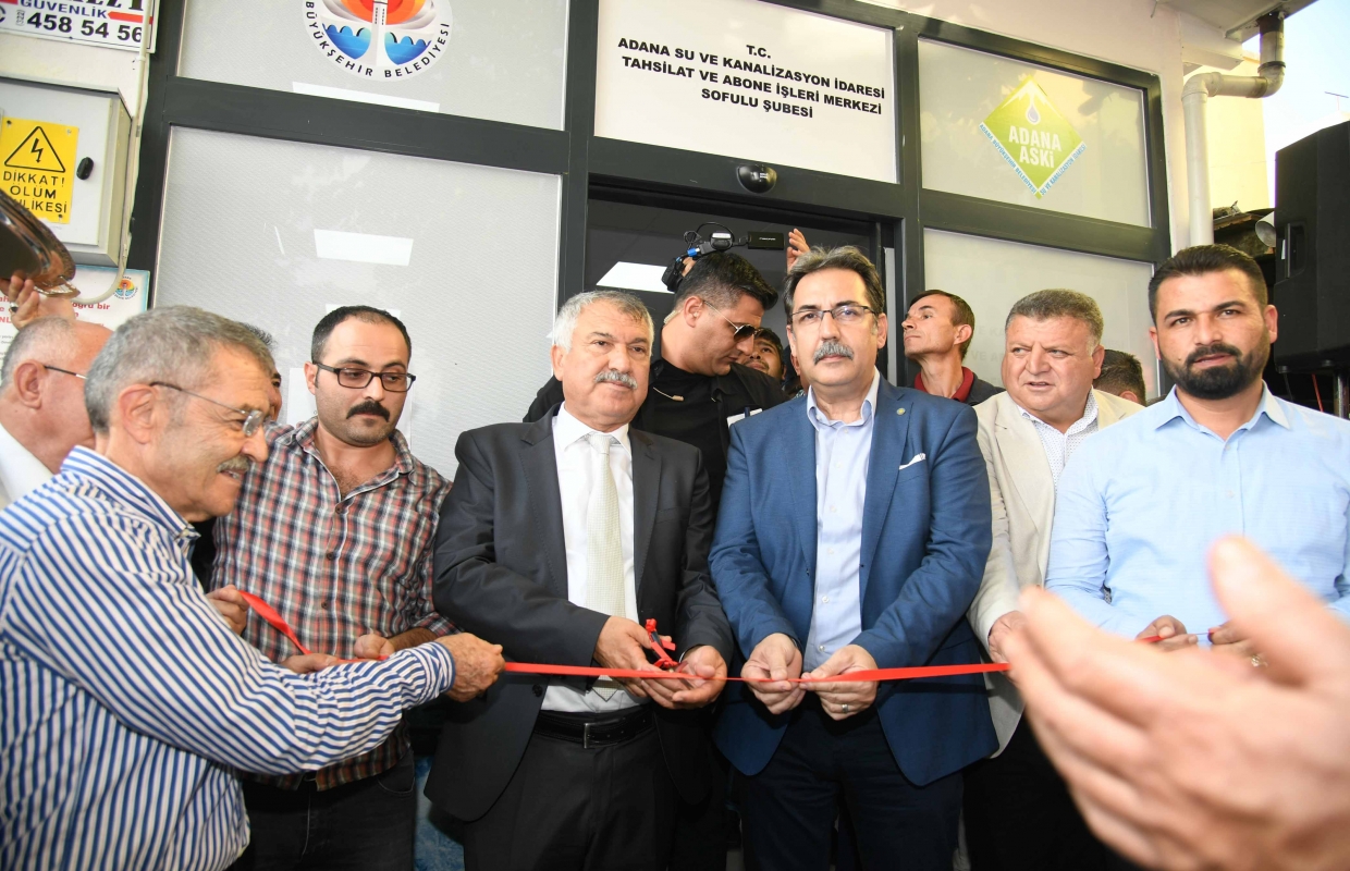 ASKİ Abone ve Tahsilat Merkezi Çukurova Hayal Park ve Sarıçam Sofulu Yeşiltepe şubelerinin açılışı, Adana Büyükşehir Belediye Başkanı Zeydan Karalar’ın katılımıyla gerçekleştirildi. Adanalıların bulundukları yerlere yakın şubelerde ASKİ ile ilgili işlerini halledebilmeleri için açılan ve sayılarının çoğaltılması hedeflenen merkezlerin, vatandaşa önemli zaman kazandıracağını kaydeden Başkan Zeydan Karalar, her iki açılışta da hemşehrilerine hitap etti. Yerli Yerinde Hizmet Projesi kapsamında gerçekleştirilen ASKİ Abone ve Tahsilat Merkezlerinin açılışlarına siyasiler, bürokratlar ve Adanalılar katıldı.