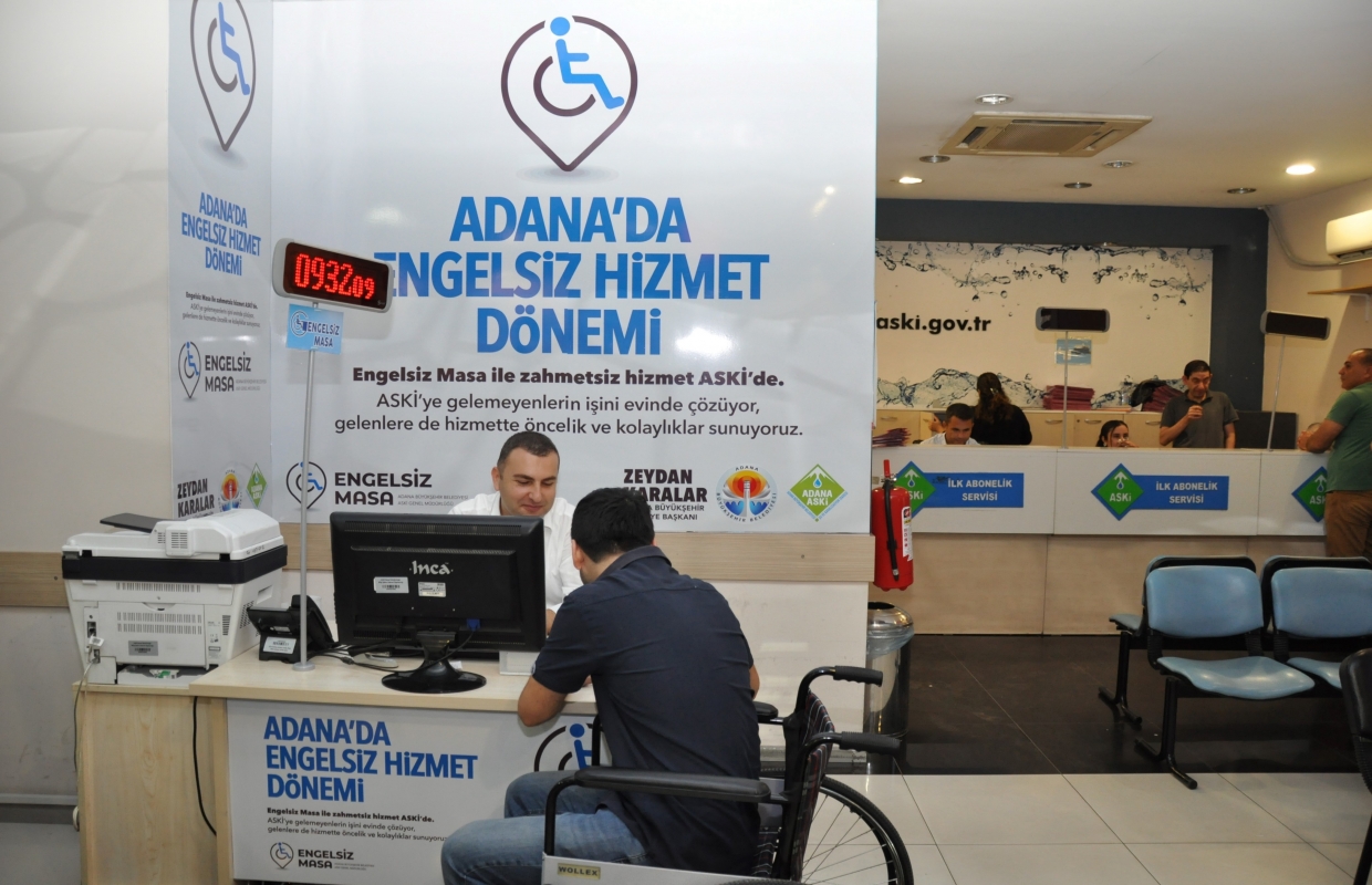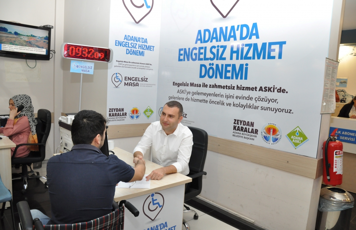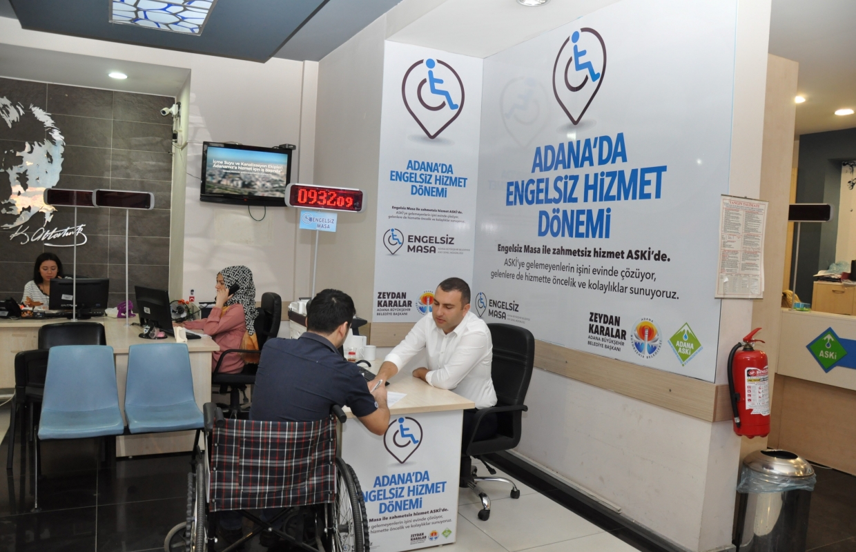Adana Büyükşehir Belediyesi Su ve Kanalizasyon İdaresi (ASKİ), ‘’Engelsiz Masa’’ oluşturarak, engelli vatandaşların işlemlerini yapmak ve 65 yaş üstü vatandaşların sıra beklemesini önlemek için çalışma başlattı.