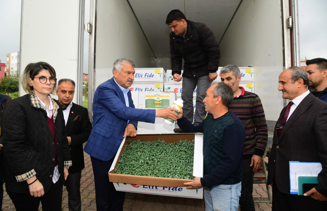bizzat teslim eden Başkan Zeydan Karalar, tarımsal üretimi teşvik amaçlı fide