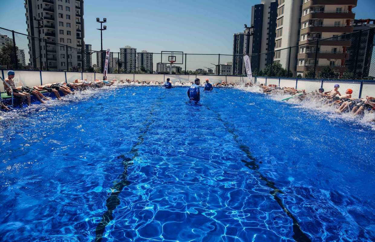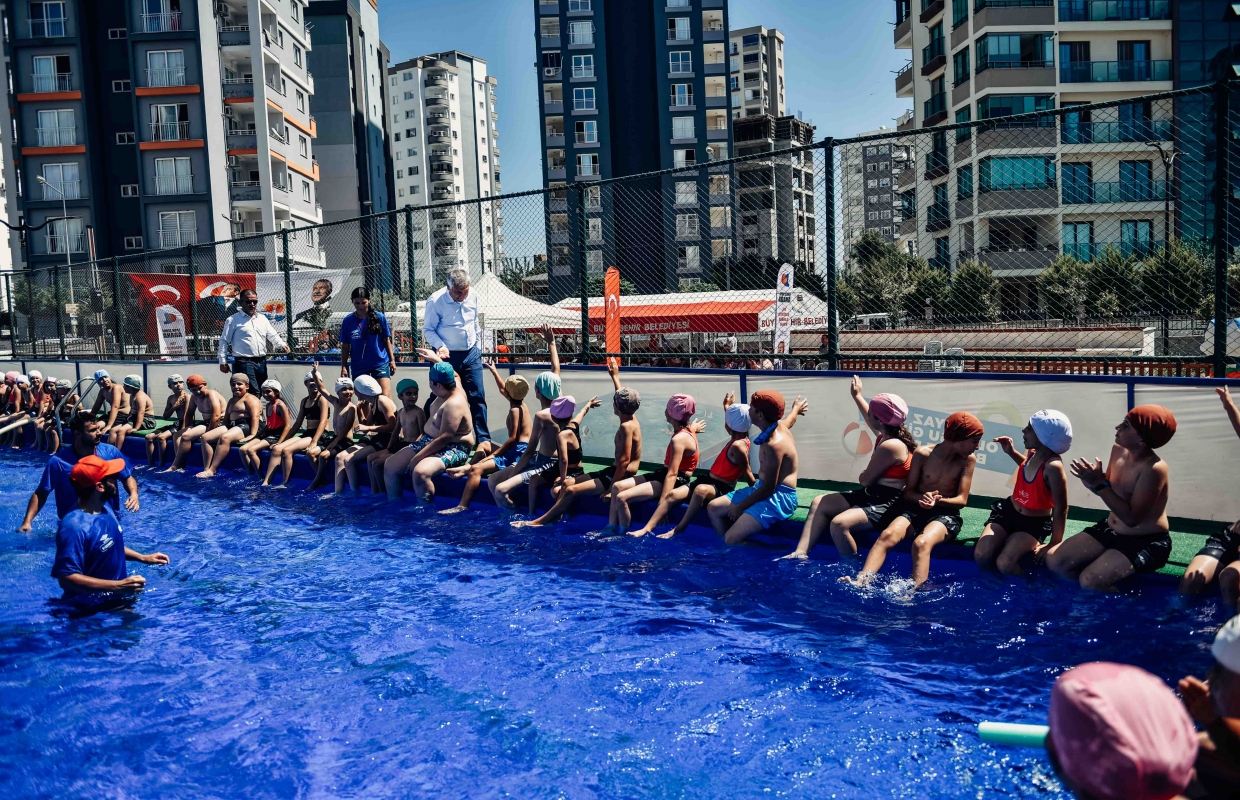 Adana Büyükşehir Belediyesi, çocuklar boğulmadan serinlesin diye 40 yüzme havuzuyla hem çocuklara yüzme öğretiyor hem de kavurucu yaz sıcaklarından korunmalarını sağlıyor.