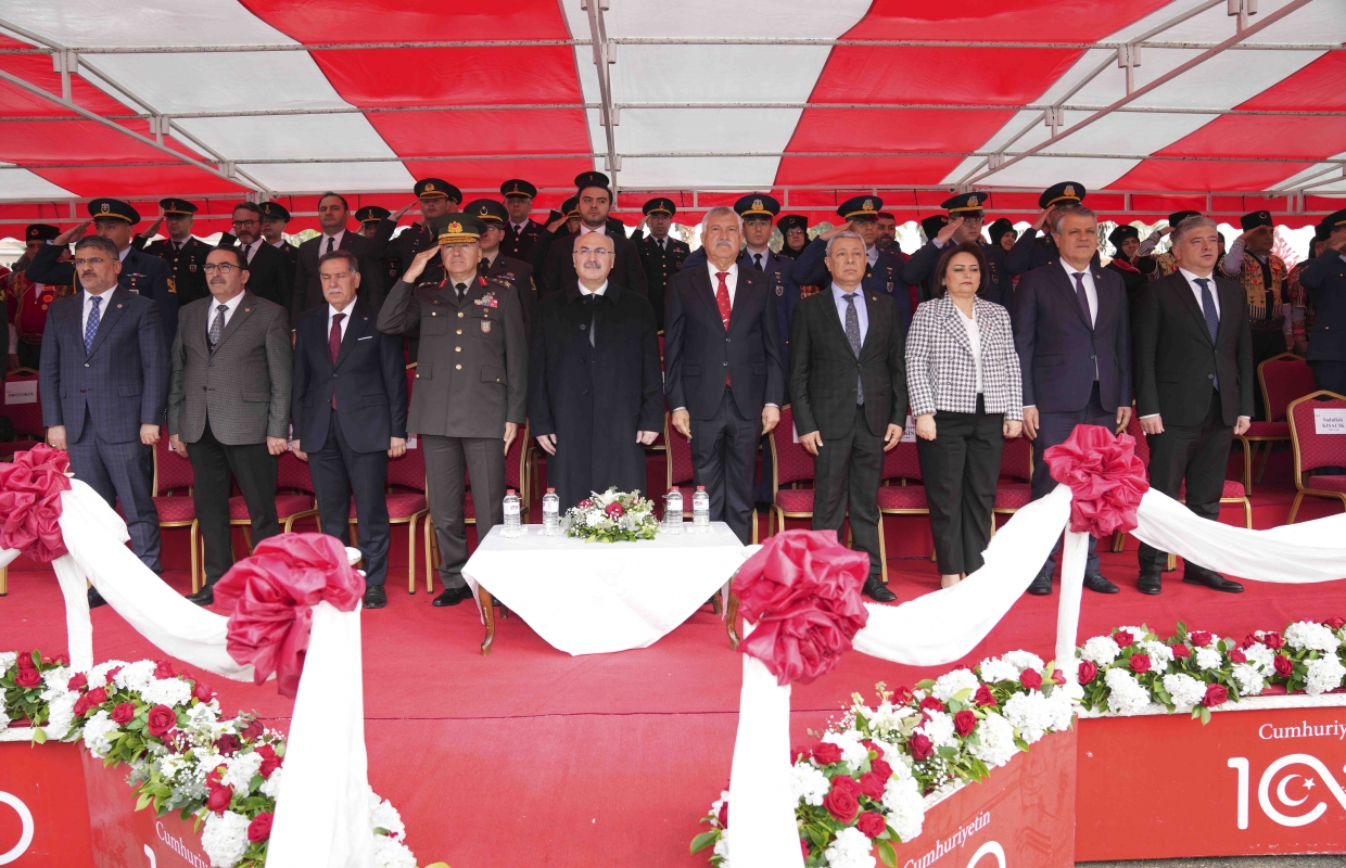 Atatürk Anıtı’na çelenk kondu, Uğur Mumcu Meydanı’nda geçit töreni yapıldı