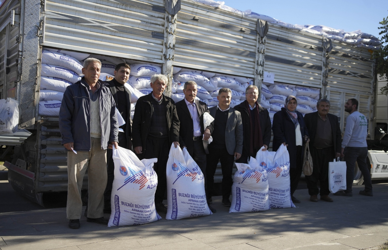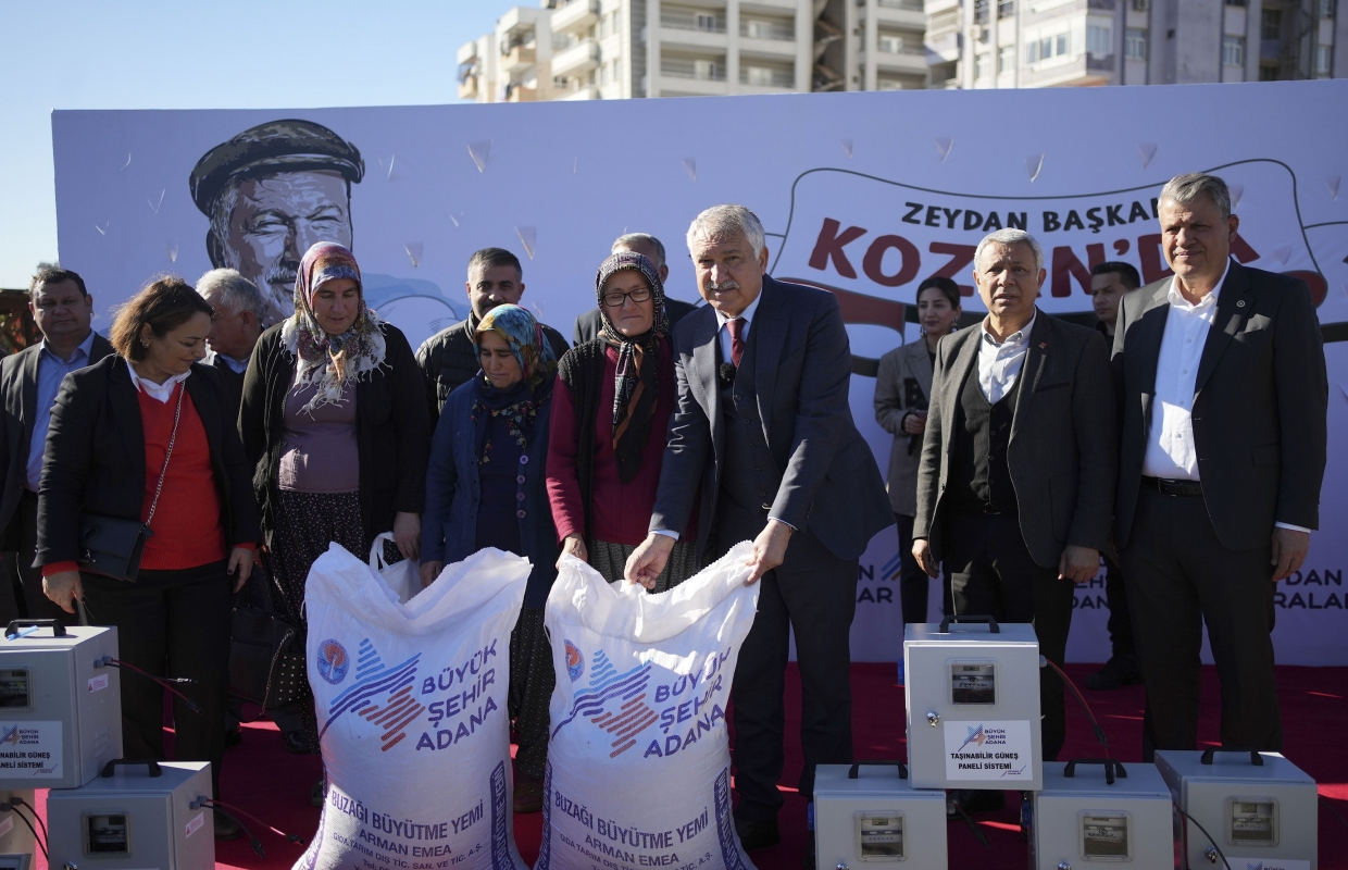 Adana Büyükşehir Belediye Başkanı Zeydan Karalar, üreticinin desteklenmesiyle ilgili hizmetler kapsamında Kozan ilçesinde 1264 torba buzağı büyütme yemi ile 390 adet mobil güneş enerjisi paneli dağıttı.