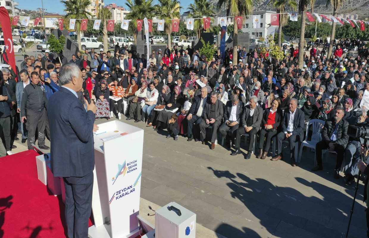 Kozan’da Şehit Mustafa Fehmi Kubilay Parkı-Meydanı , Sırelif Kreşi, yol, su hizmeti gibi önemli işler yaptıklarını ve yapmaya devam edeceklerini ifade eden Başkan Zeydan Karalar, çok zor durumdaki ailelere halk kart dağıttıklarını da belirtti. Konuşmaların ardından mobil güneş enerjisi paneli ve buzağı yemi dağıtıldı.