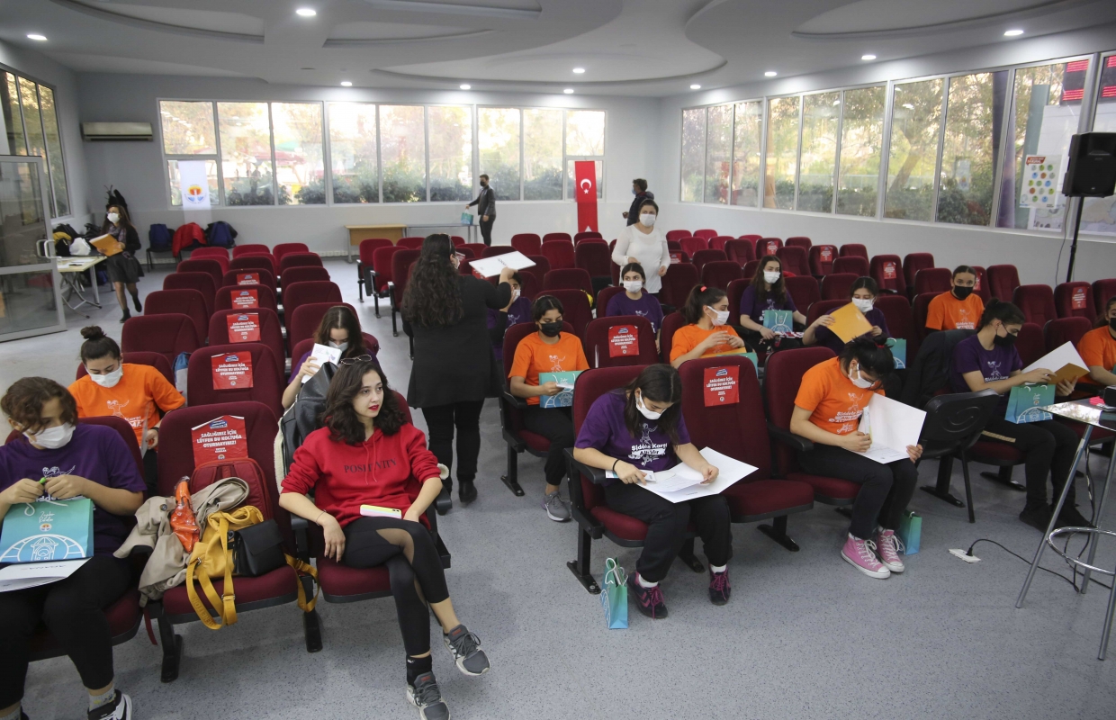 Toplumsal Cinsiyete Dayalı Siber Şiddet Atölyesi ismiyle gerçekleştirilen ve Atatürk Spor Salonu tesislerinde yapılan toplantıya, Ada Sokağı Spor Kulübü Kadın Hentbol Takımı sporcuları katıldı.