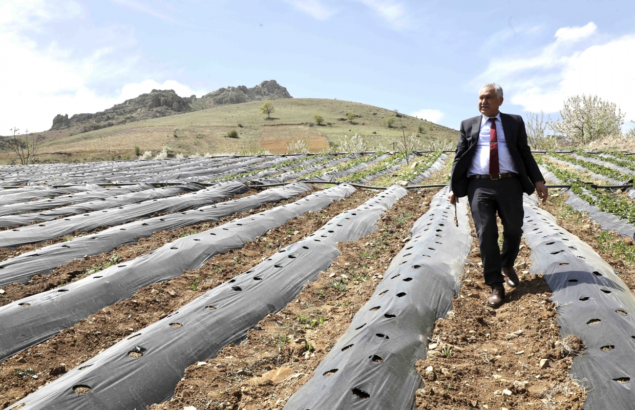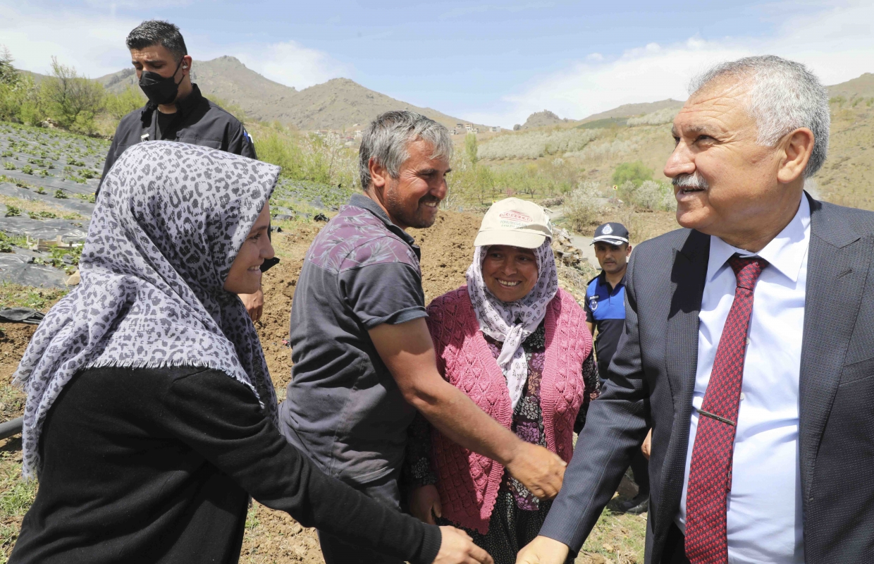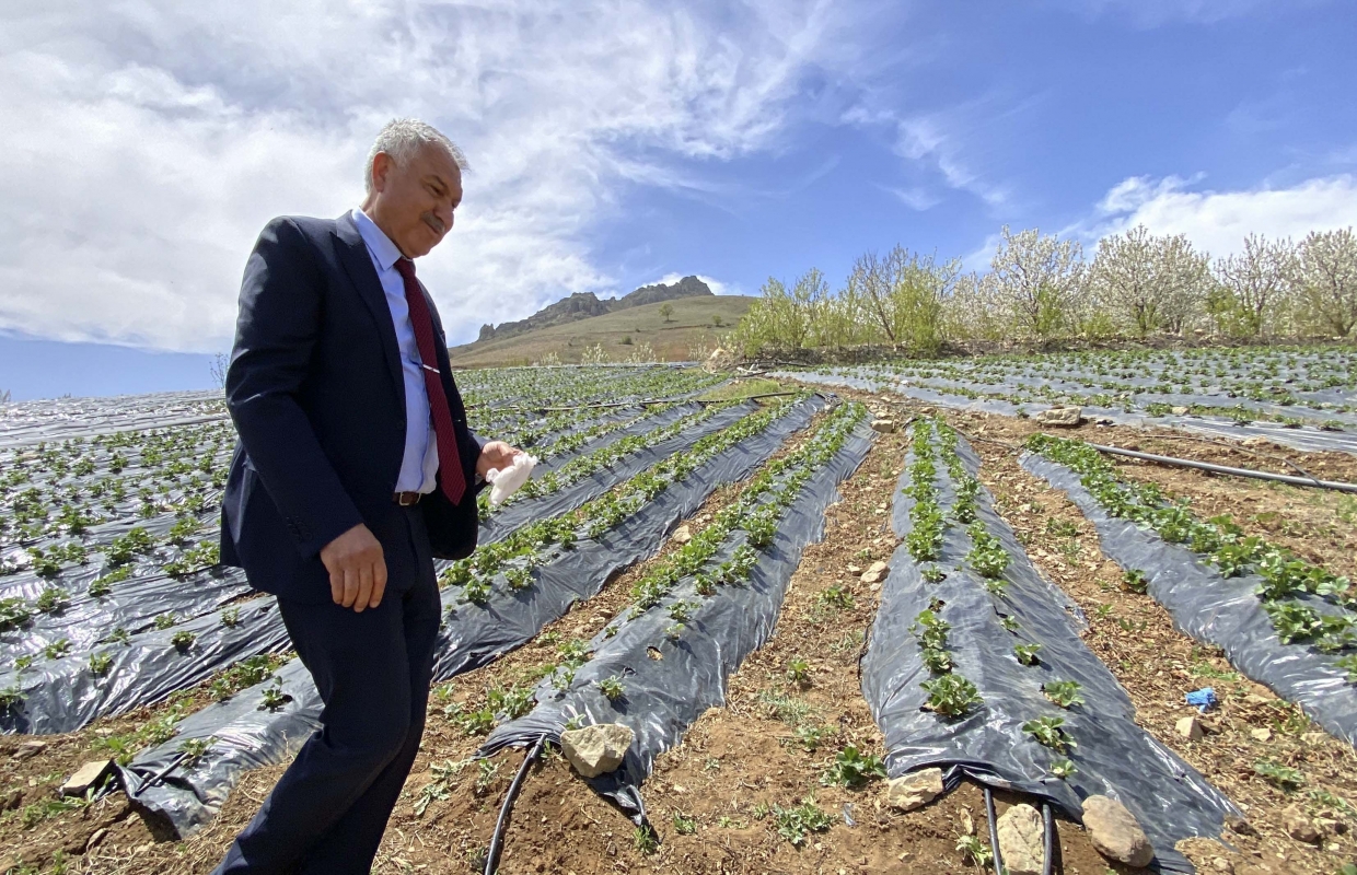 Bölgede çilek fidesi dağıtımına bizzat katılan, tarlaları gezen,