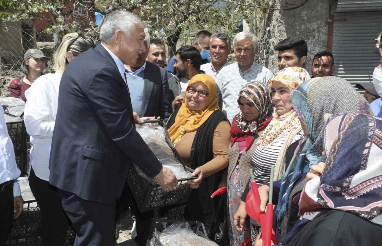 Pozantı’da çilek, ceviz, domates, badem, harnup fidesi dağıttıklarını