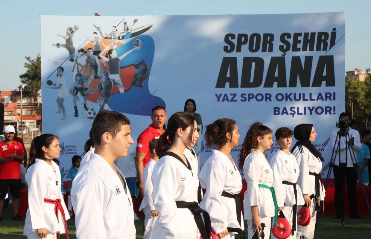 Adana Büyükşehir Belediyesi Yaz Spor Okulları buluşması, Seyhan Güney Yıldızı Stadyumu’nda gerçekleştirildi. Yüzme, futbol, voleybol, basketbol, tekvando, güreş, satranç, tenis, atletizm, kano-kürek, masa tenisi, hentbol branşlarında açılan Yaz Spor Okulları; 12 ilçede, 75 bölgede, 70 uzman antrenör eşliğinde faaliyet gösterecek. Toplam 11 bin 744 çocuğa ücretsiz spor eğitimin verildiği Adana Büyükşehir Belediyesi Yaz Spor Okulları’nda, spor malzemeleri ve kıyafetleri ücretsiz dağıtılıyor.