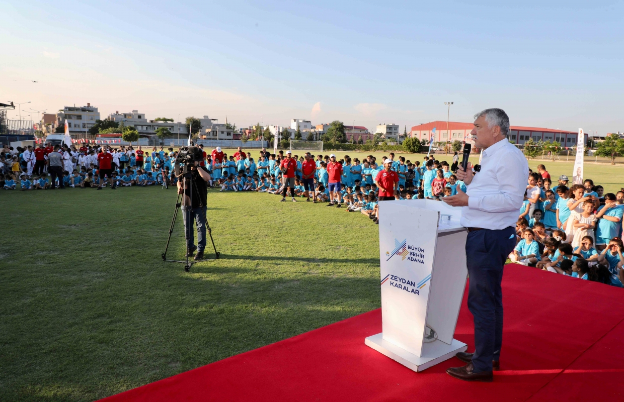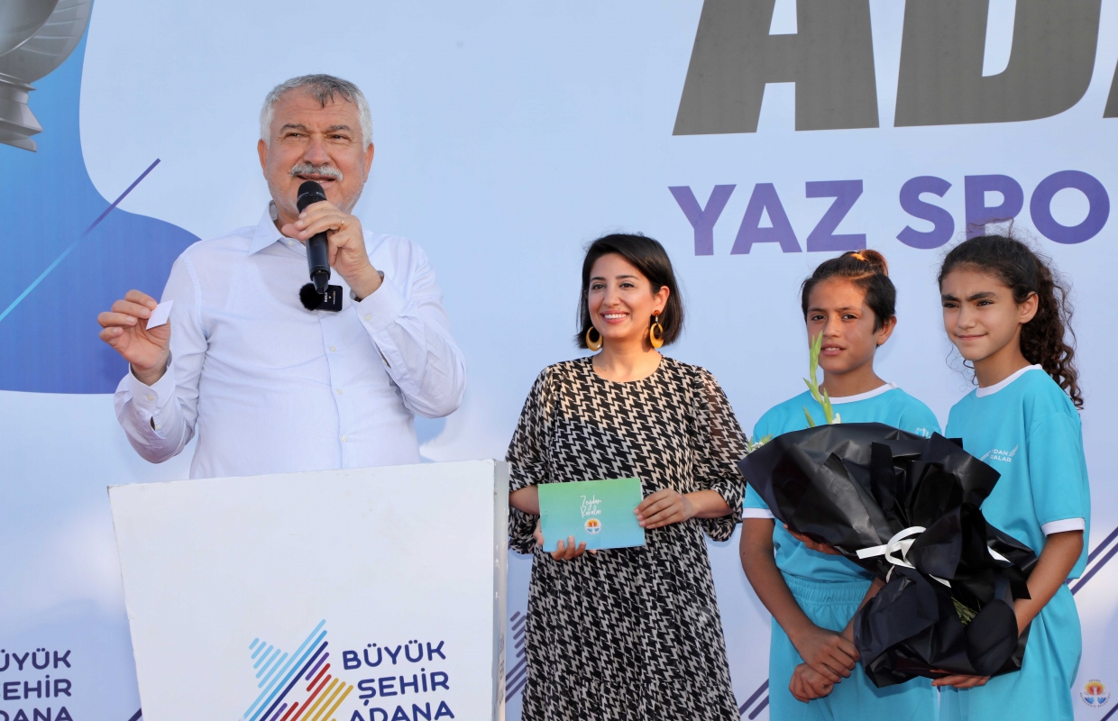 Veliler ve sporcuların da katıldığı törende konuşan Adana Büyükşehir Belediye Başkanı Zeydan Karalar, “Çocuklarımız karnelerini aldı ve onlar sokağın tehlikelerin den uzak kalsınlar sporun güzelliklerini yaşasınlar diye çok sayıda branşta Yaz Spor Okulu açtık. Annelerin, babaların içi rahat etsin.