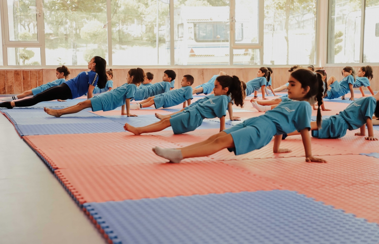 gelişimleri için önem taşıyan jimnastiği öğreniyor, esneklik kazanıyor.