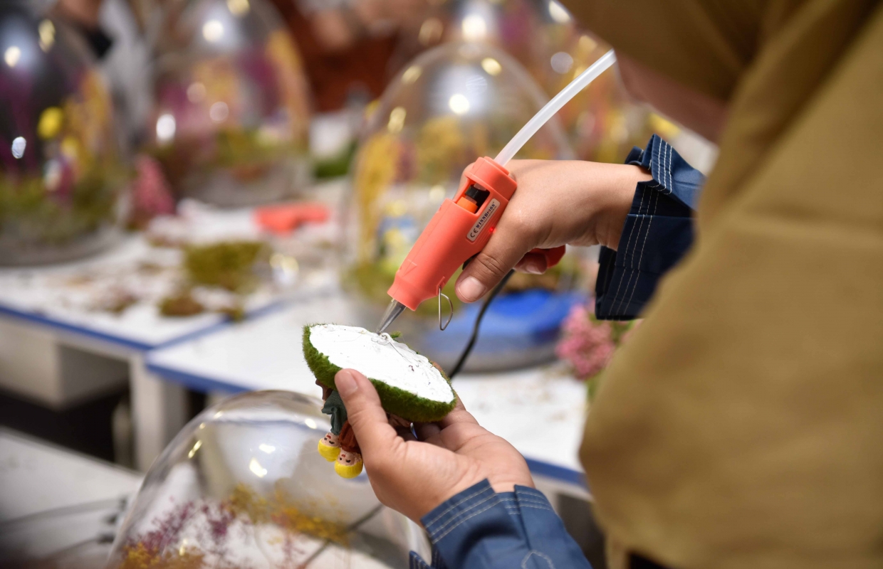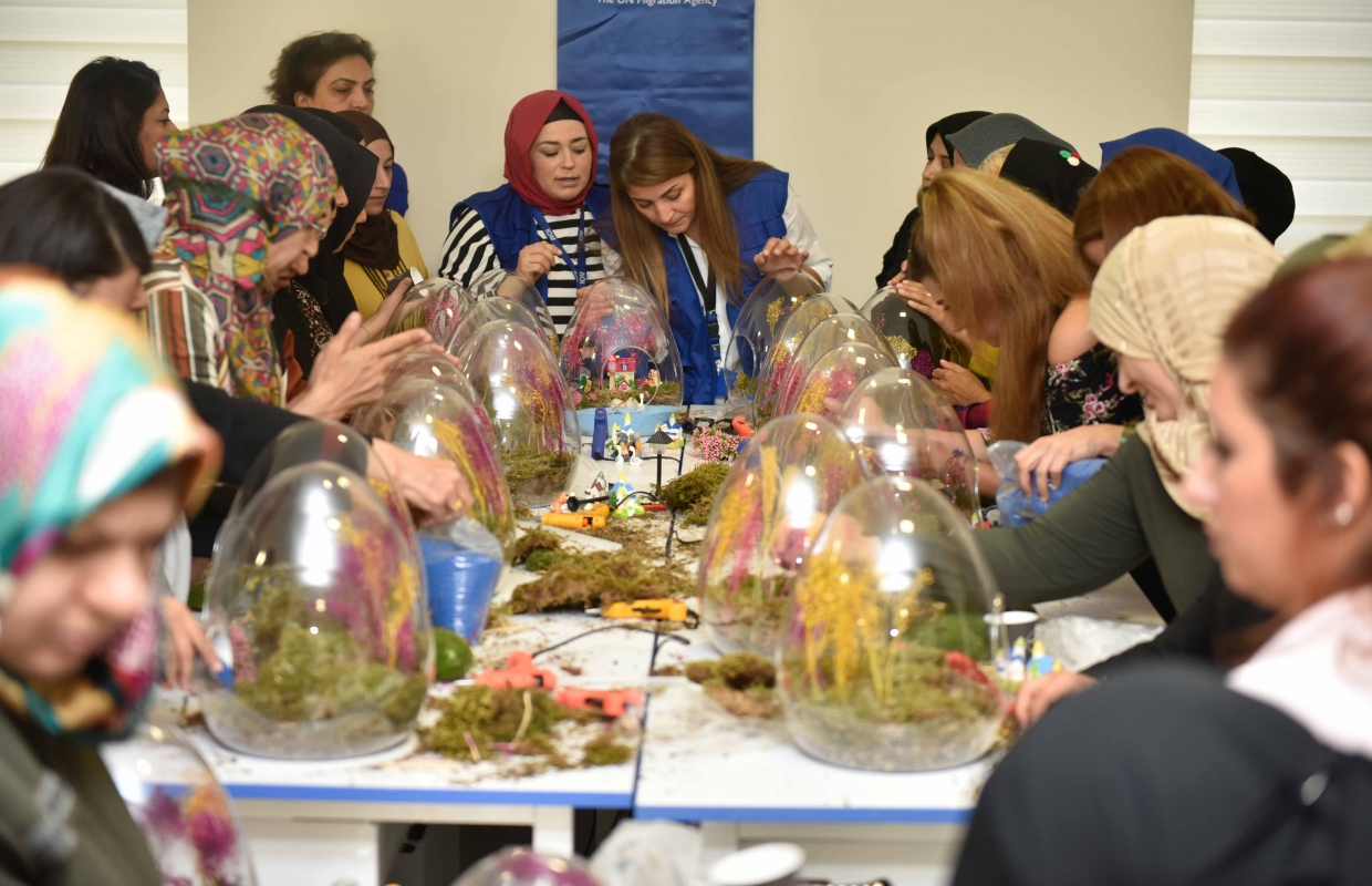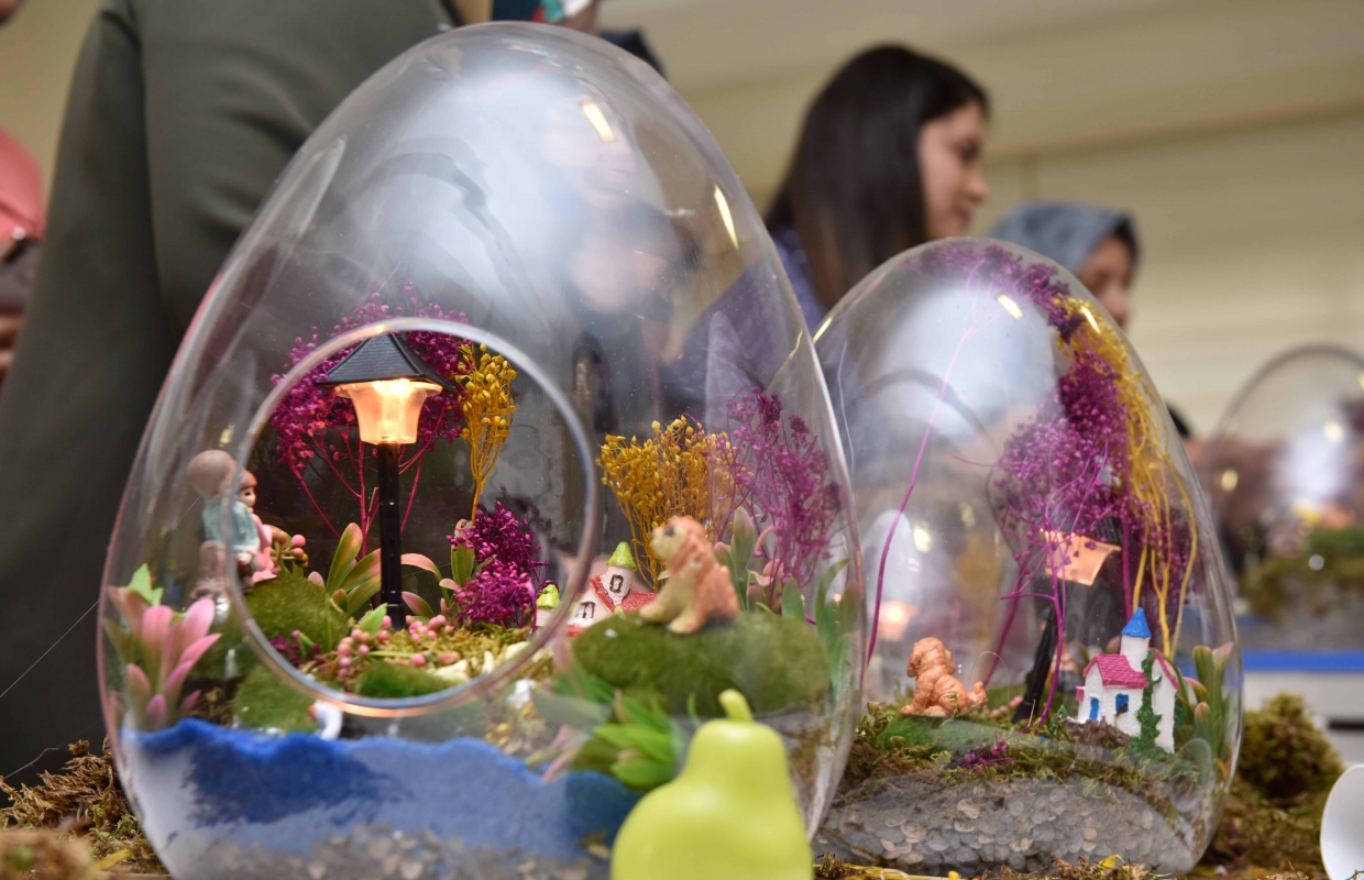 teraryum atölyesinde göçmen kadınlar, fanus içinde bitki yetiştirme becerisi