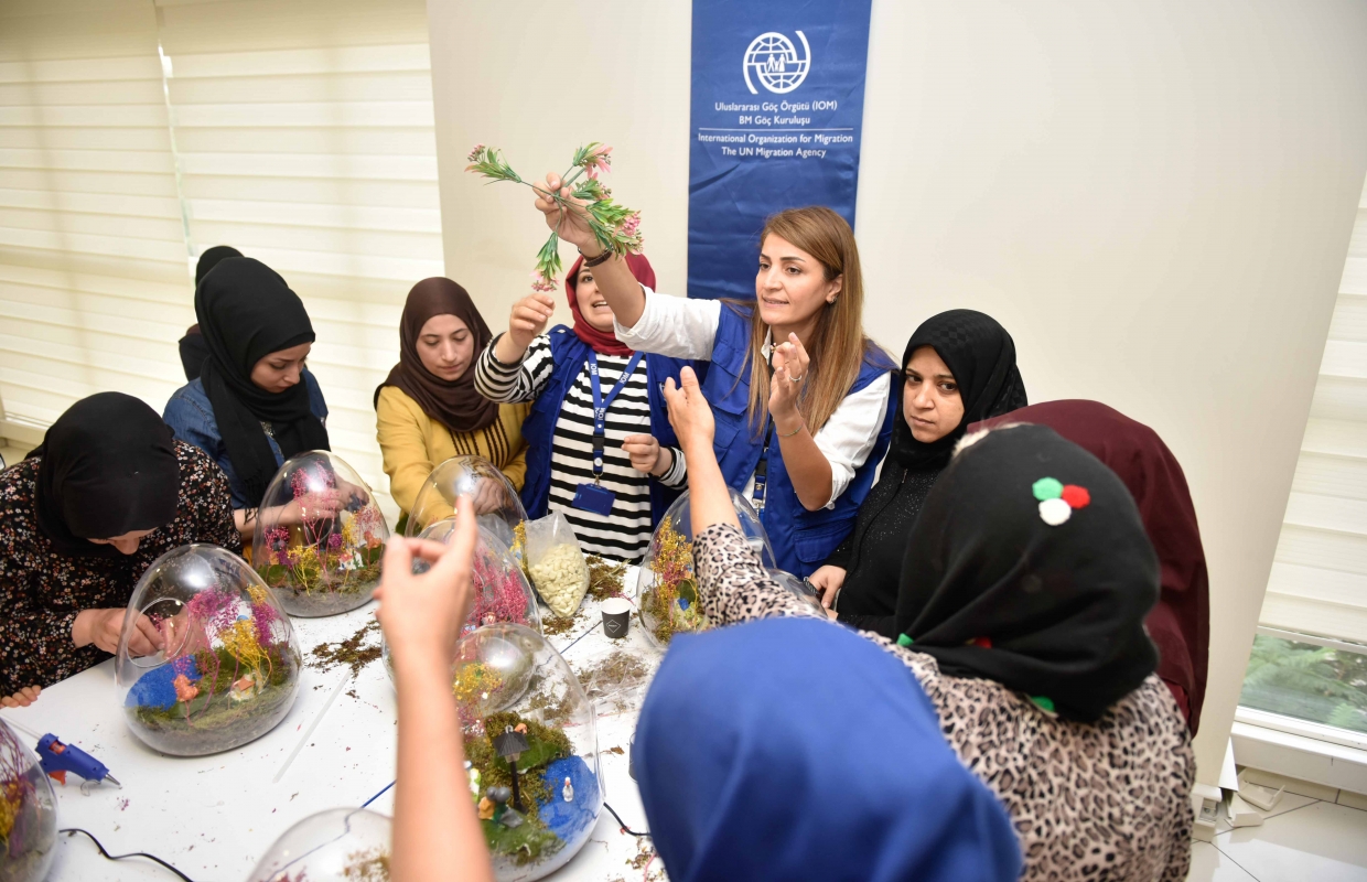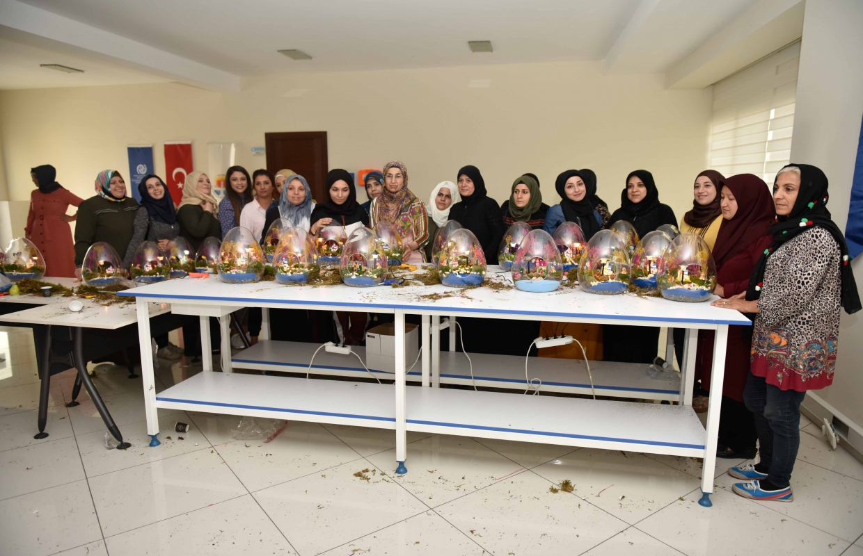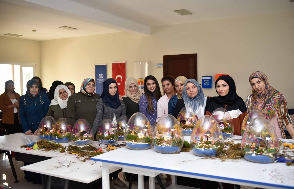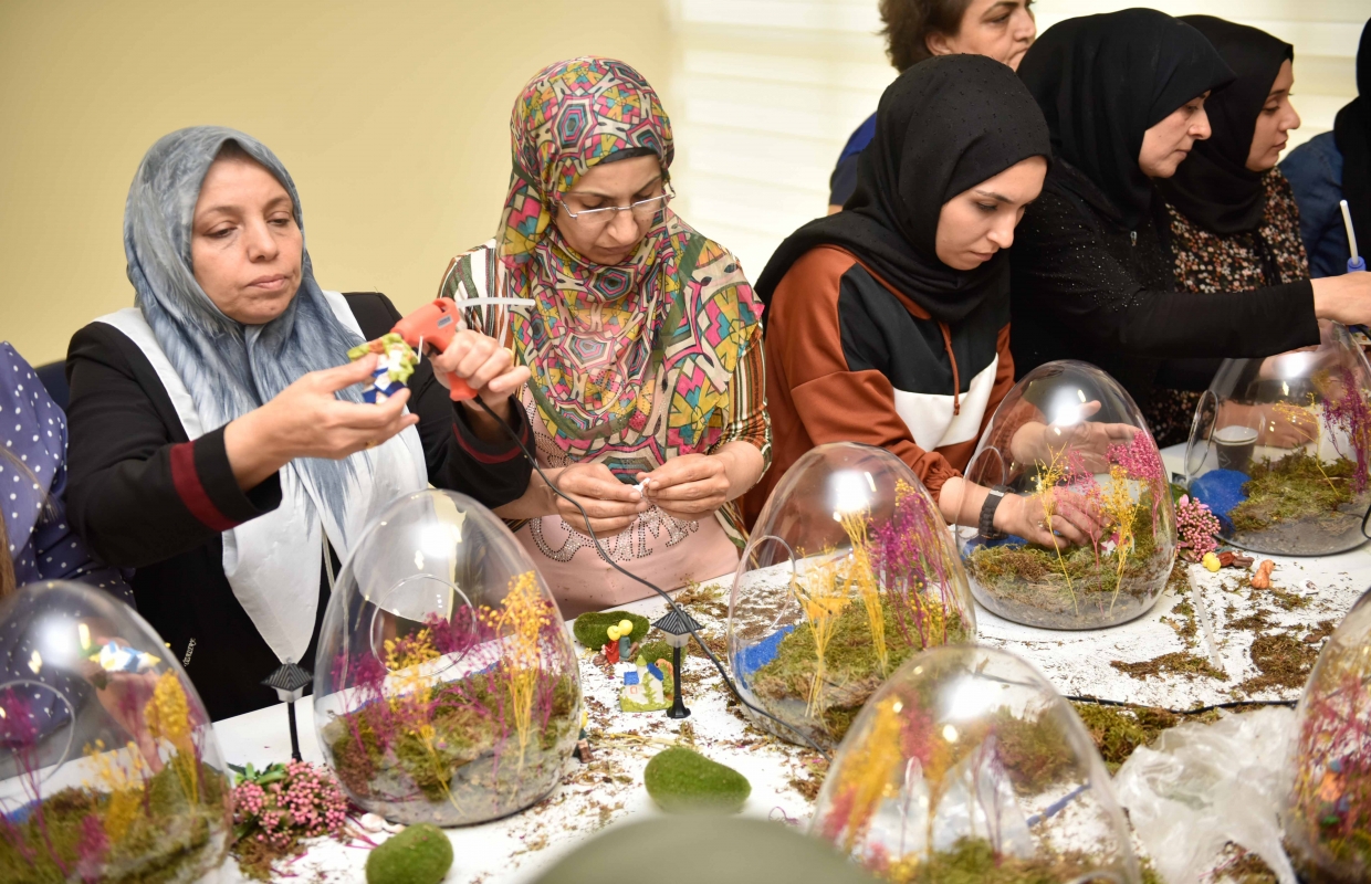 Adana Büyükşehir Belediyesi Göç ve Göçmen İşleri Şube Müdürlüğü, Afganistan, İran, Irak ve Suriye uyruklu göçmen kadınları, toplumla kaynaştırma ve uyum sağlamalarını kolaylaştırma amacıyla teraryum kursunda buluşturdu.