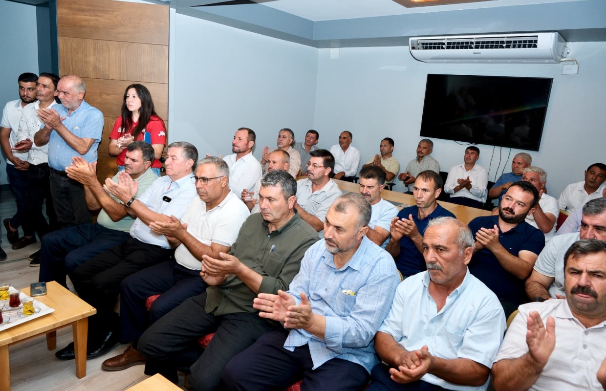 şunları söyledi: “Aladağ Belediye Başkanımız ve muhtarlarımızla bir araya
