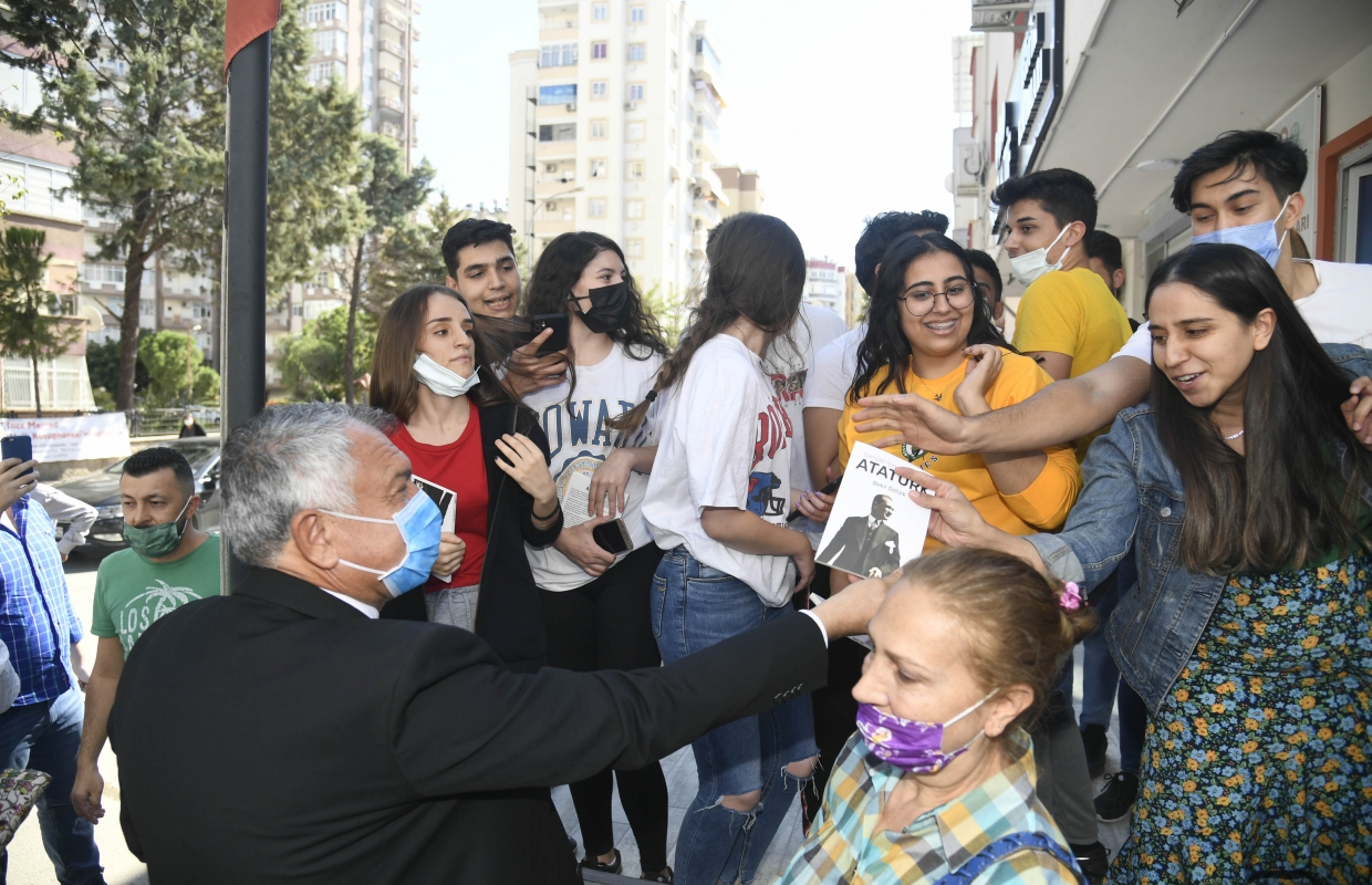 Başkan Zeydan Karalar, açılışı takip eden gençlere Gençler İçin Atatürk kitabını hediye etti.