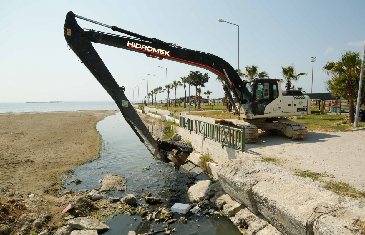 Adana’nın sahil ilçesi Karataş’ta sahil temizliği yapan Adana Büyükşehir Belediyesi ekipleri, ilçe merkezinden geçip denize dökülen derede ıslah çalışması gerçekleştirdi. Büyükşehir ekipleri iş makineleriyle derenin denizle buluştuğu bölgede atık temizlemesi ve ıslah çalışması yaptı.