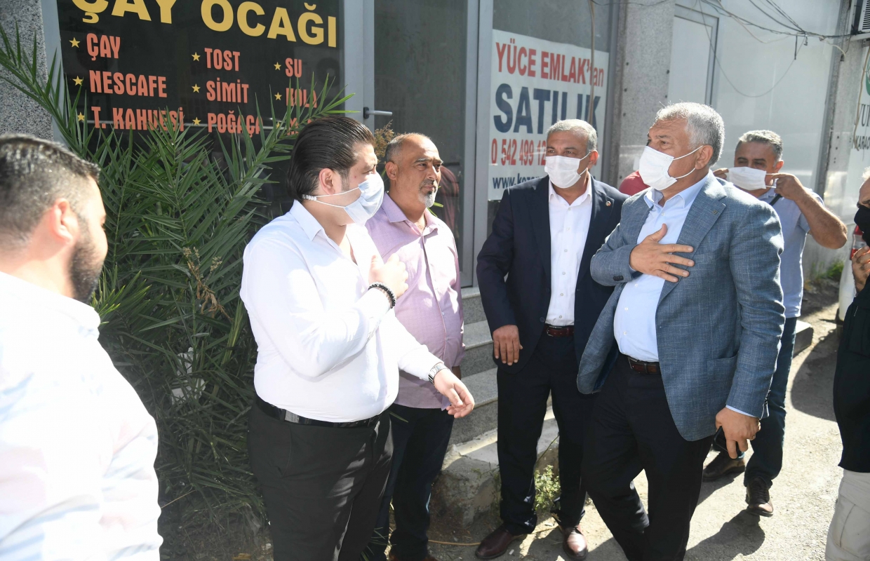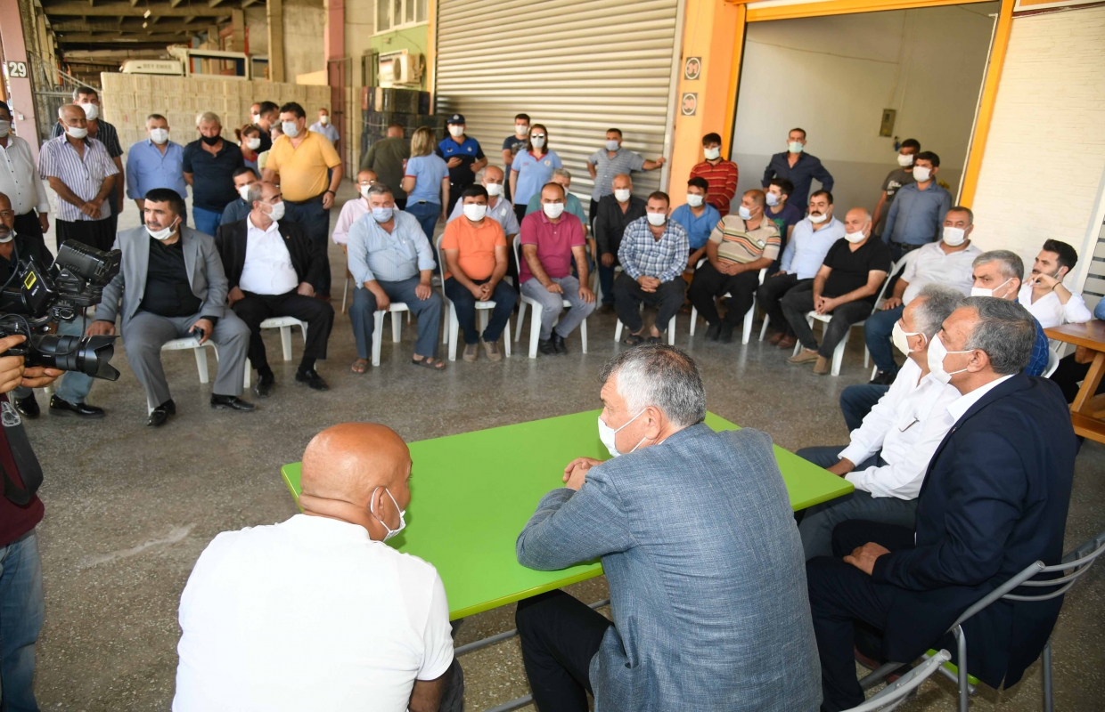 Meyve Hali'ndeki esnafları da ziyaret ederek taleplerini ve sorunlarını