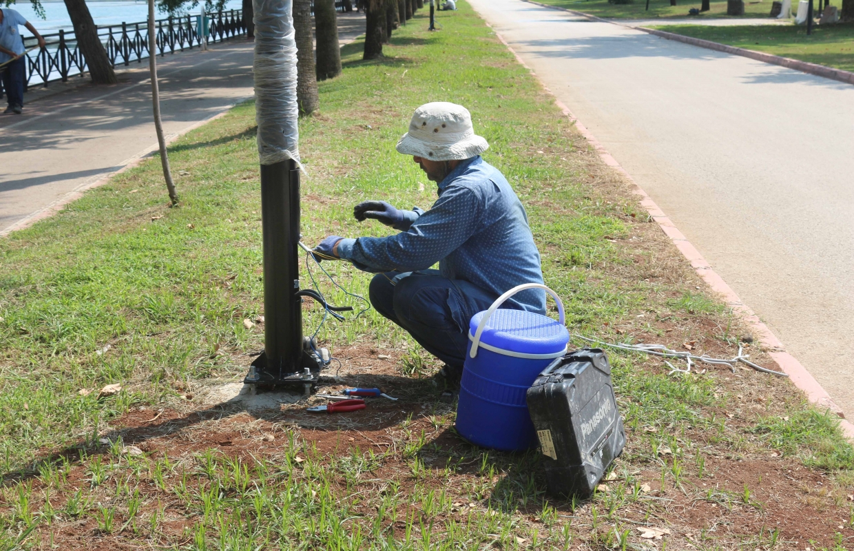 Adana Büyükşehir Belediyesi Park ve Bahçeler Daire Başkanlığı ekipleri il genelinde yaptıkları park ve yenileme çalışmaları kapsamında Merkez Park’ta bulunan aydınlatma direklerini yeniledi. Böylece park daha güvenli hale geldi ve ışıltılı bir şekle büründü.