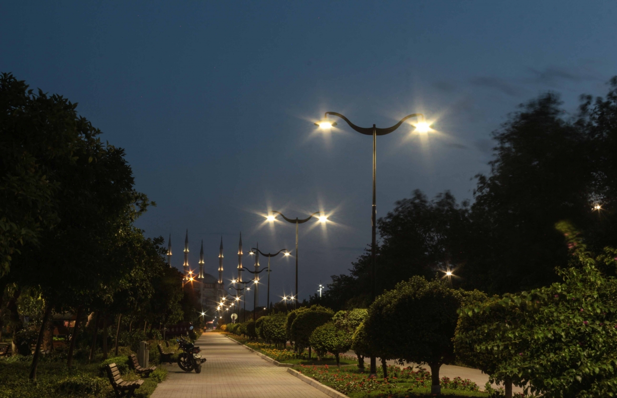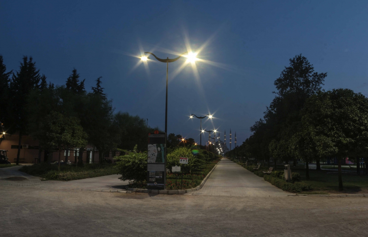 komşu olan 300 dönüm arazi üzerine kurulu Merkez Park’ta aydınlatma direkleri