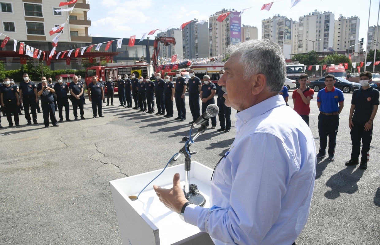 “İtfaiyeyi anlatmaya gerek yok. Hem insanların canıyla hem de malıyla ilişkili, doğal afetlerden daha az zarar görülmesini sağlamak üzere kutsal bir iş yapan birim. Herkesten daha çok dikkatli ve hazır olması gereken bir birim. Yıllarca felaket olmayabilir ama bu asla sizi rehavete düşürmemeli. Sürekli hazır halde bulunması gereken bir birimsiniz. Bizim Adana İtfaiye erlerimiz, çalışanlarımız, yaşanan felaketlerde cansiperane çalışıyor, olası felaketler için de daima hazır bekliyor. Bir afette insan canı kurtarmak olağanüstü bir iş. İnsan canı hiçbir şeyle kıyaslanamaz. Sizlerin görevi önce insan canı kurtarmak, ardından mal kaybını önlemek” diye konuştu.