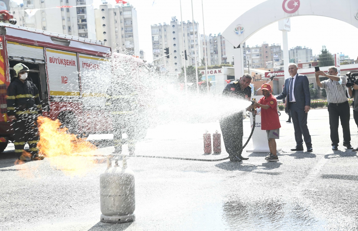 Başkan Zeydan Karalar’ ın konuşmasının ardından etkinlikler kapsamında öğrencilerin de katıldığı yangın tatbikatı yapıldı.