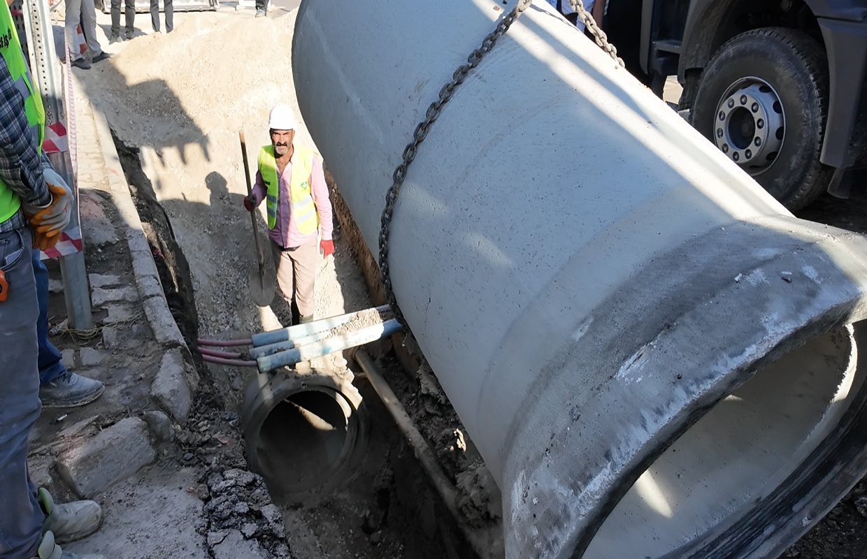 ekipleri, 300, 800 ve 1000 mm çaplarında beton borular kullanarak hat imalatını