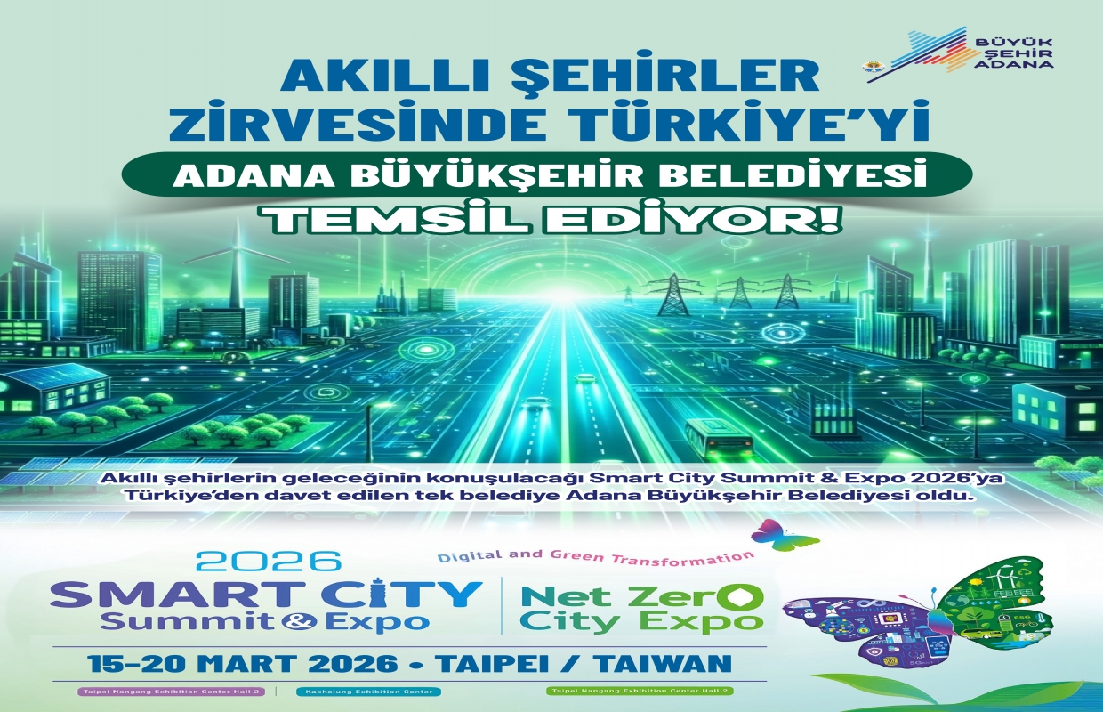 Tayvan’ın başkenti Taipei’de 15–20 Mart 2026 tarihleri arasında düzenlenecek dünyanın en büyük akıllı şehir organizasyonlarından Akıllı Şehir Zirvesi ve Fuarı (Smart City Summit & Expo) programına Türkiye’den yalnızca Adana Büyükşehir Belediyesi davet edildi.