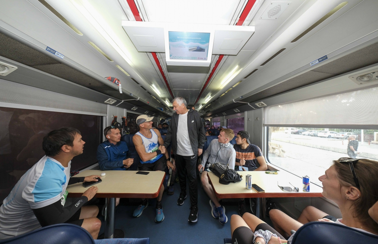 Dünyada bir ilk yaşandı, yarışmanın bir ayağına katılacak 250 sporcu, çıkış noktasına trenle götürüldü.