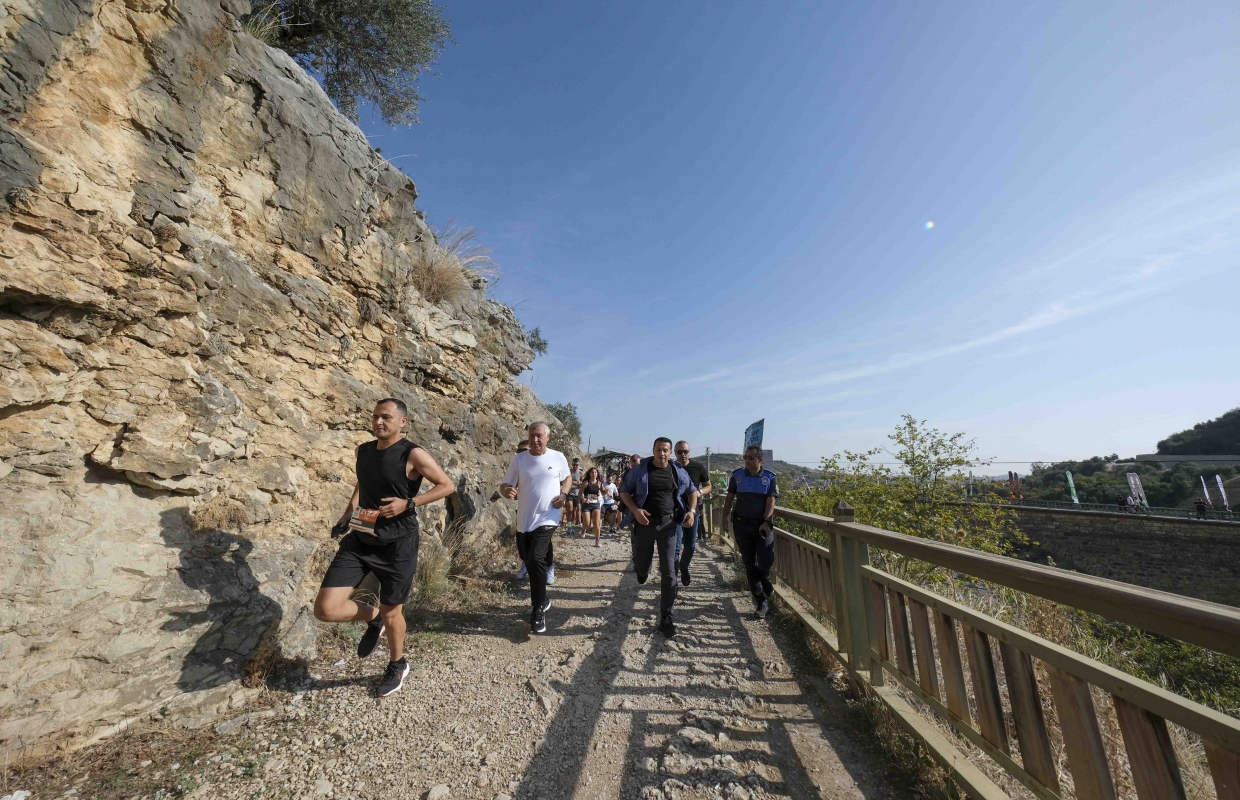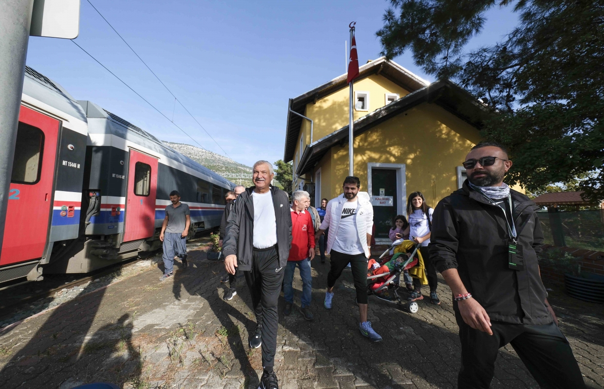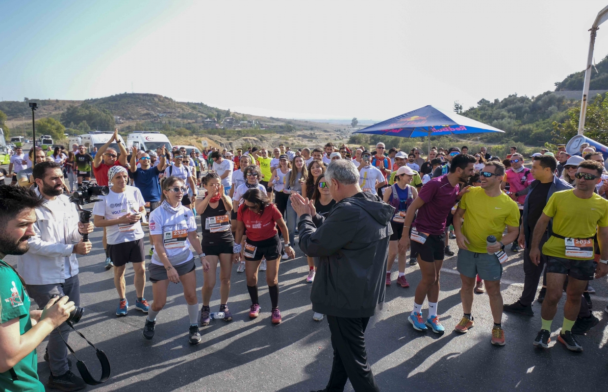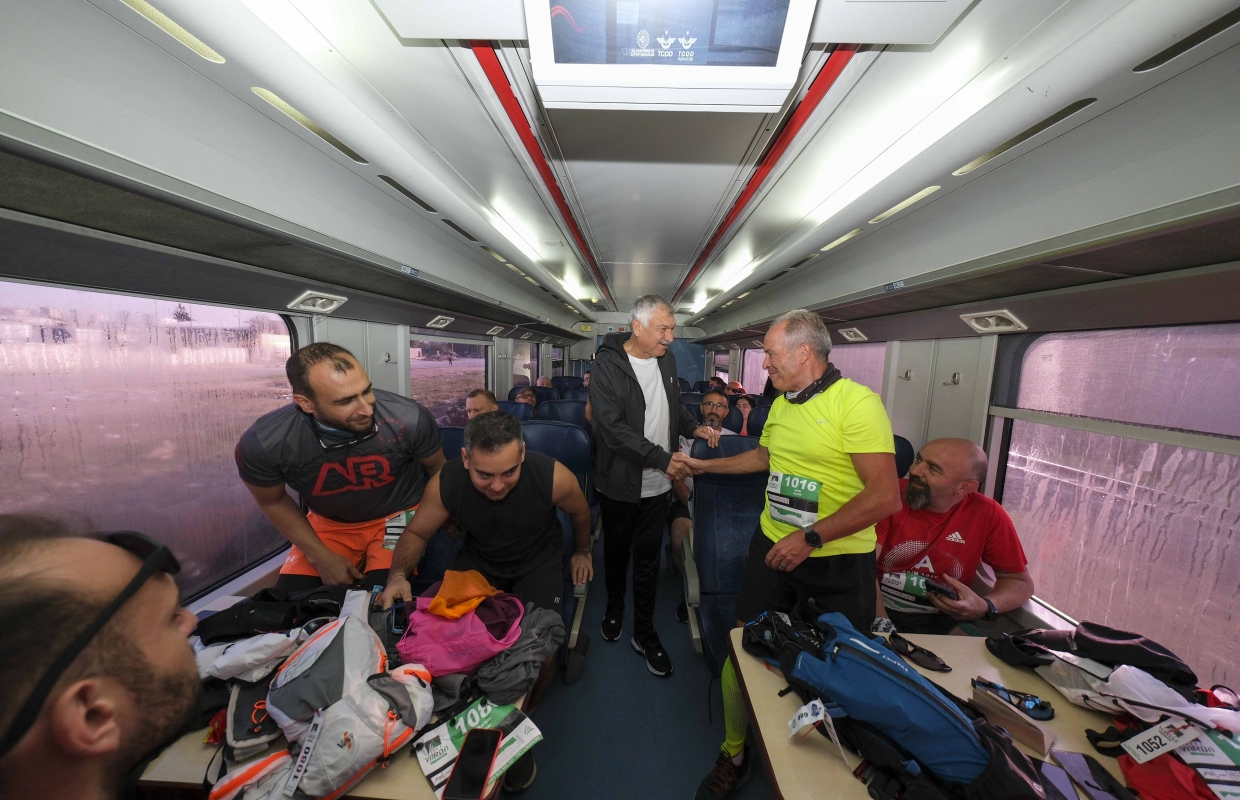 Başkan Zeydan Karalar, sporcuların trenle başlangıç noktasına götürüldüğü yarışların her aşamasında sporculara eşlik etti, bir süre koştu.