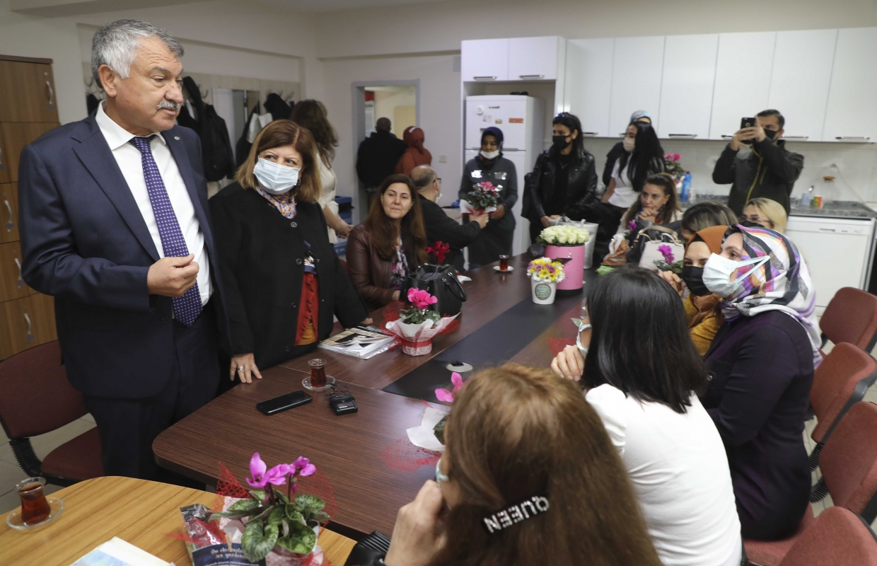 Zeydan Karalar, Yavuz Selim Ortaokulu’nu ziyaret edip, öğretmenlere çiçek verdi, sohbet etti.